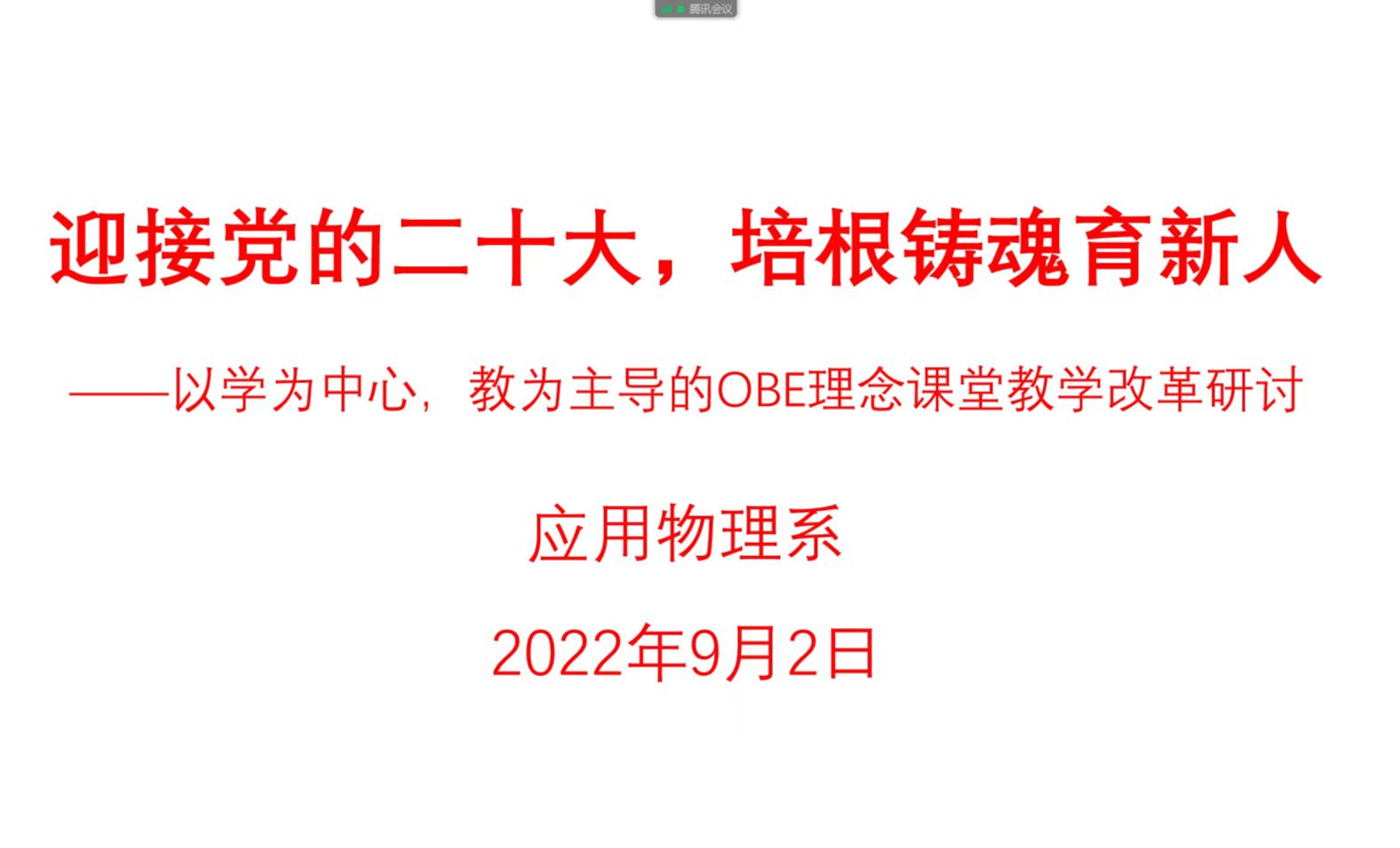 2022年9月2日下午,beats365vip官网登录入口物理系利用腾讯会议平台开展“迎接党的二十大,培根铸魂育新人”专题活动。物理系党支部书记、系主任及全体教师参加活动。