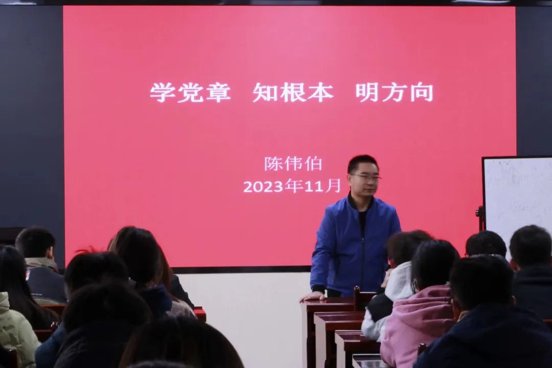 为切实做好入党积极分子的培养教育工作,提高入党积极分子的思想政治素质,充实党员队伍后备力量。beats365vip官网登录入口于11月12日在220会议室举办了2023—2024学年第一学期入党积极分子培训班第一讲,本次培训主题为 “学党章,知根本,明方向”,由beats365vip官网登录入口党委副书记陈伟伯主讲。