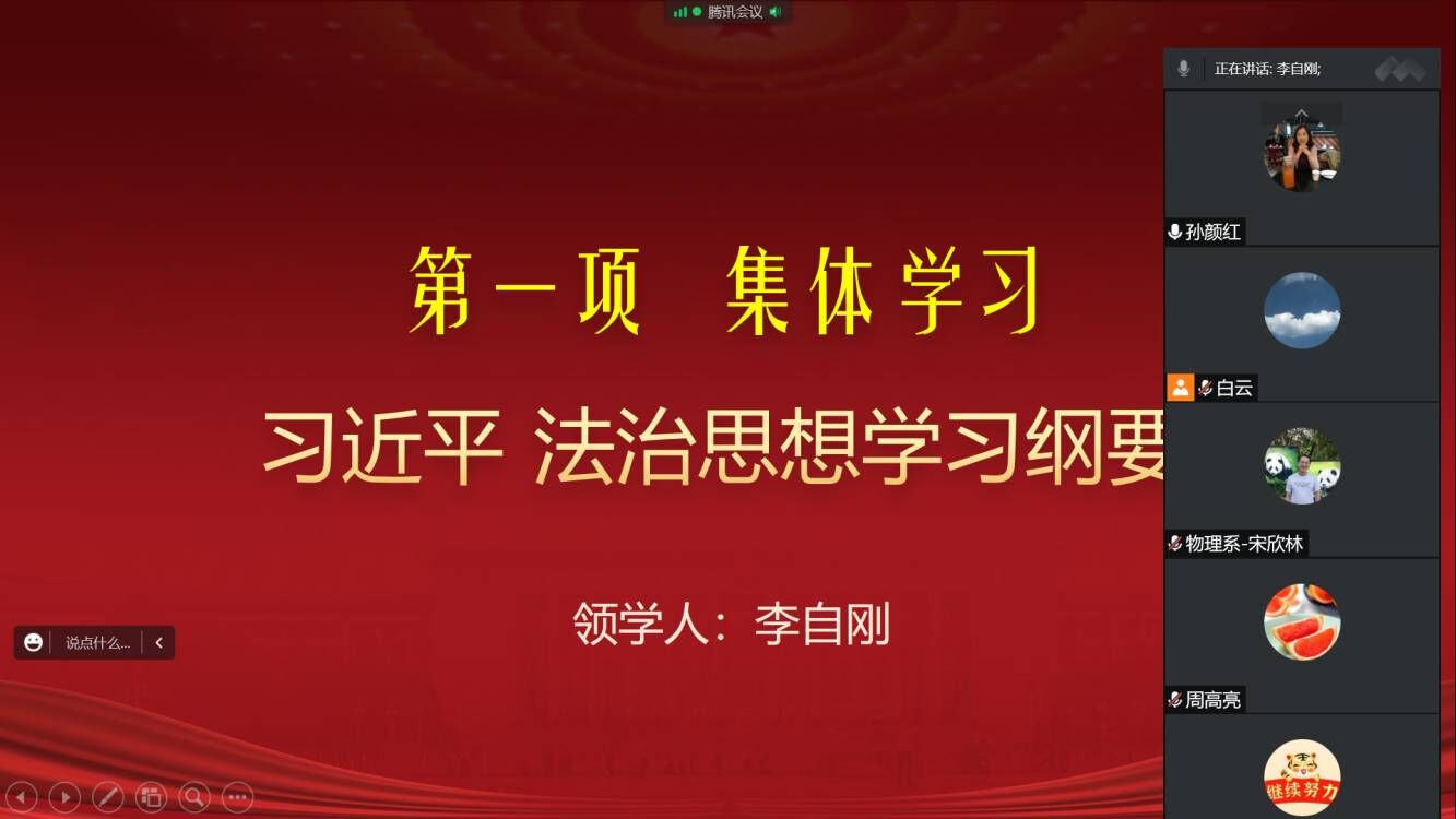 会议集中学习了《习近平谈治国理政》第四卷之“在加快推进教育现代化的新征程中培养担当民族复兴大任的时代新人”,《深入学习习近平关于教育的重要论述》之第九章“坚持把教师队伍建设作为基础工作”,《习近平法治思想学习纲要》之党的领导是中国特色社会主义法治之魂、坚持依法治网、推进全民守法等篇章。