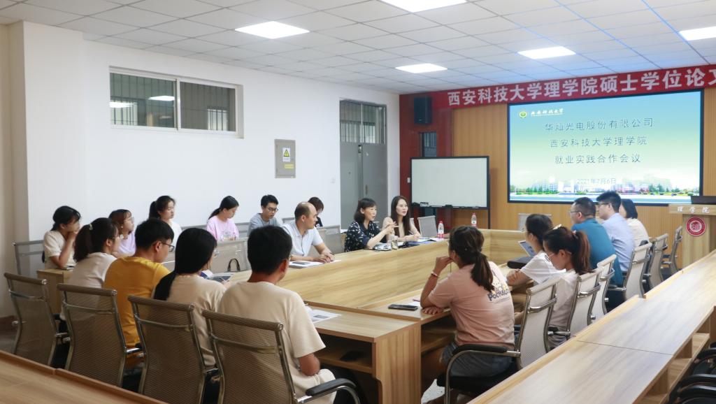 7月6日上午,华灿光电股份有限公司人力资源部集团招聘经理张振伟、红黄芯片中心副总兼肖和平等一行3人来公司走访,并在临潼校区208会议室召开就业实践合作会议。beats365vip官网登录入口党委书记孙颜红、副书记高欣、副经理解忧、团委书记赵明及物理电子学全体研究生参加会议。
