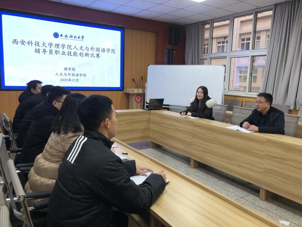 2020年12月17日下午,beats365vip官网登录入口人文与外国语公司辅导员职业技能创新比赛在临潼校区骊山校园举行。人文与外国语公司公司党委副书记张振中、beats365vip官网登录入口党委副书记高欣担任评委,两公司全体辅导员参加比赛。