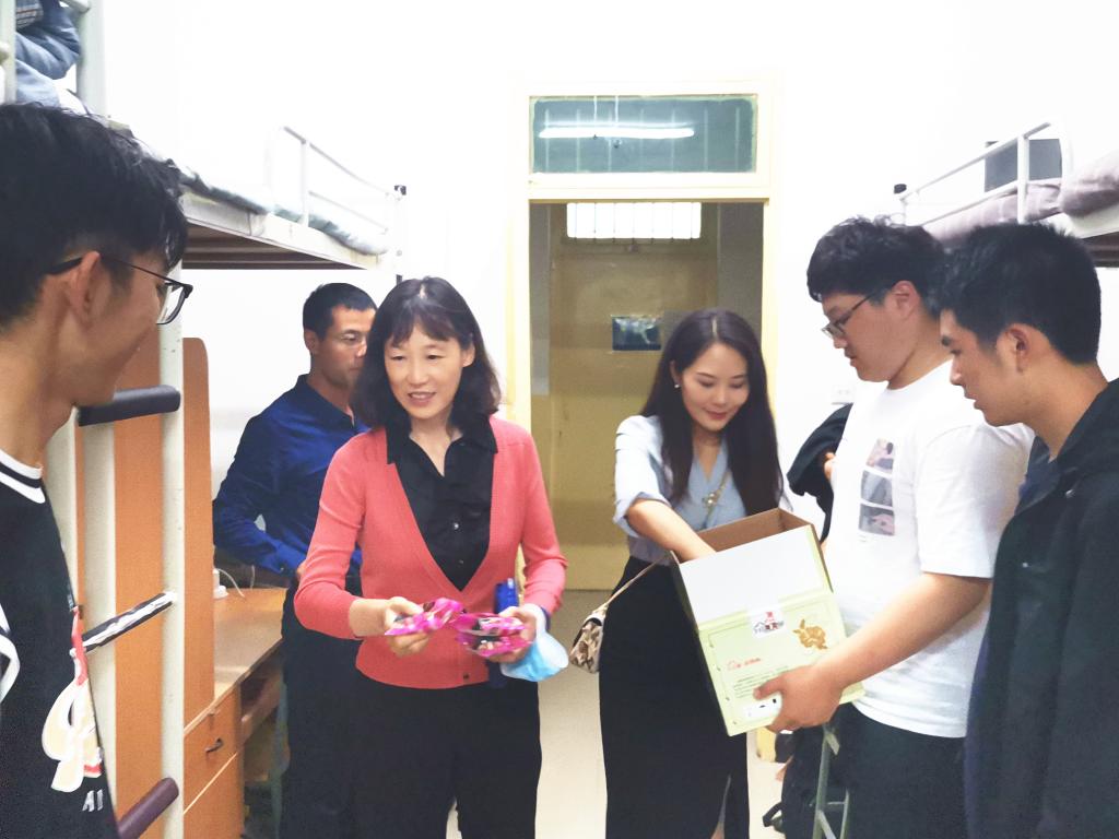 桂香万里,中秋意浓,9月29日下午,beats365vip官网登录入口党委书记孙颜红、副书记高欣、学工办主任赵明、辅导员侯斌刚来到公寓,给同学们送去了香甜的月饼和节日的祝福,让同学们感受到公司的关怀。各位老师详细的询问学习、生活情况,亲切暖心的交谈,温暖了现场每一个人的心,宿舍里荡漾着节日的温馨与笑声,洋溢着师生间浓浓的情谊。