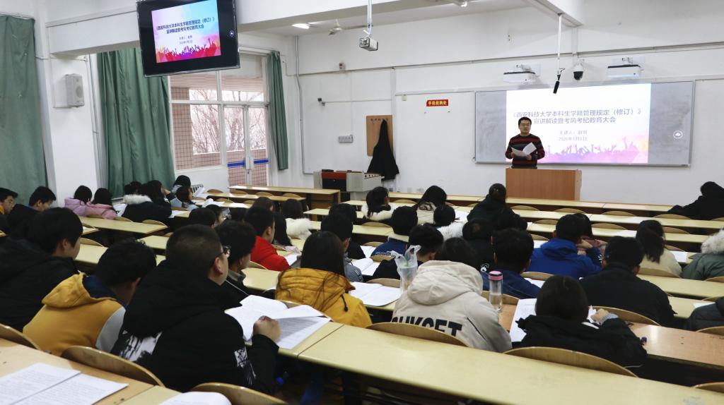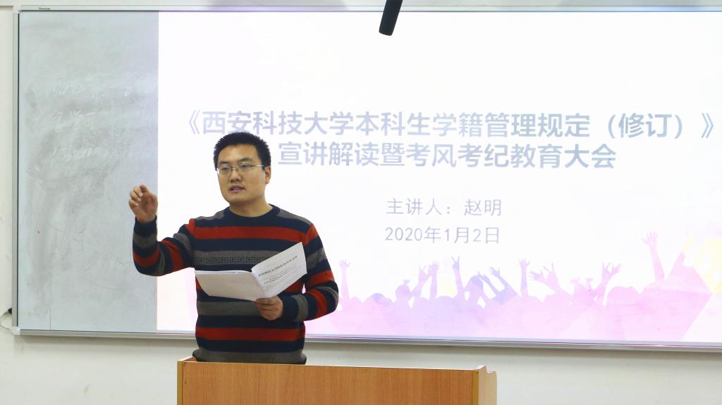 1月2日下午,beats365vip官网登录入口召开本科生学籍学位新规宣讲解读暨考风考纪教育大会,beats365vip官网登录入口学工办主任赵明主讲,2019级全体员工参加会议。