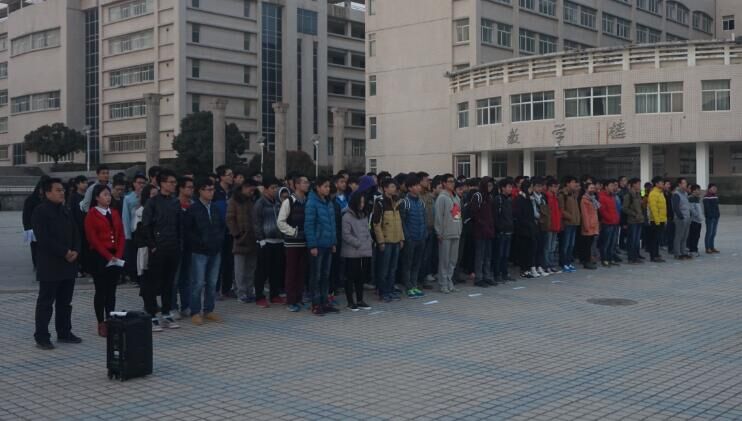 庄严的国歌回荡在明德广场,在全体同学的注目下,鲜红的五星红旗开始缓缓升起,迎风飘扬。随后,工程力学1501班闫安坤、数学与应用学1501班刘烨分别作了学习雷锋精神的国旗下演讲。最后,分团委书记赵老师讲话,指出了同学们应该学会坚持,哪怕是一件小事,只要你坚持下去也会变得伟大。
