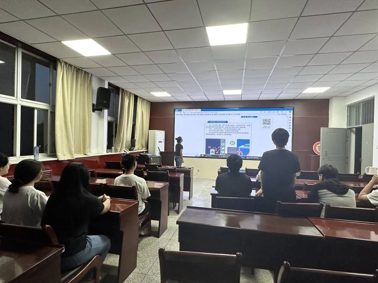 在互动环节,杨瑞欣通过安全知识竞答的方式,检验了同学们对安全知识的掌握程度。接着他们围绕如何加强校园安全、提高自我保护能力等问题展开了热烈讨论。大家畅所欲言,分享自己的见解和经验,掌握了实用的安全技能。