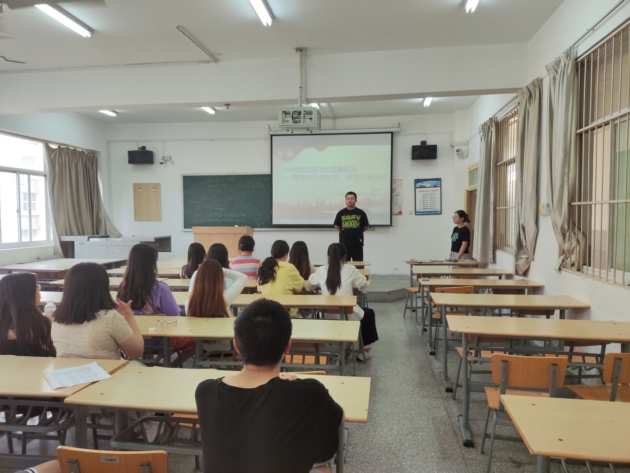 活动中,团支书首先强调了读书对于个人成长的重要性,鼓励同学们要养成良好的阅读习惯,并向同学们介绍了《习近平与老员工朋友们》《中国式现代化面对面》等书籍,分享了自己的读书心得。