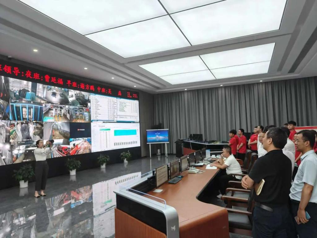 通过高清大屏,实践团成员亲眼目睹了井下生产现场的实时画面,以及各类生产数据的动态变化。工作人员详细介绍了平台如何通过大数据分析,优化生产流程、预测潜在风险、提高生产效率,并展示了智能调度系统如何根据实时数据自动调整生产计划,确保生产安全高效运行。