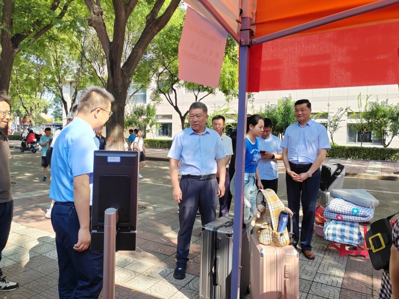 清晨的阳光洒在公司的每一个角落,装饰一新的校园洋溢着浓厚的欢迎氛围。公司领导班子成员及高年级员工志愿者们早早地等候在迎新现场,以最诚挚的笑容和最周到的服务迎接每一位新生的到来。