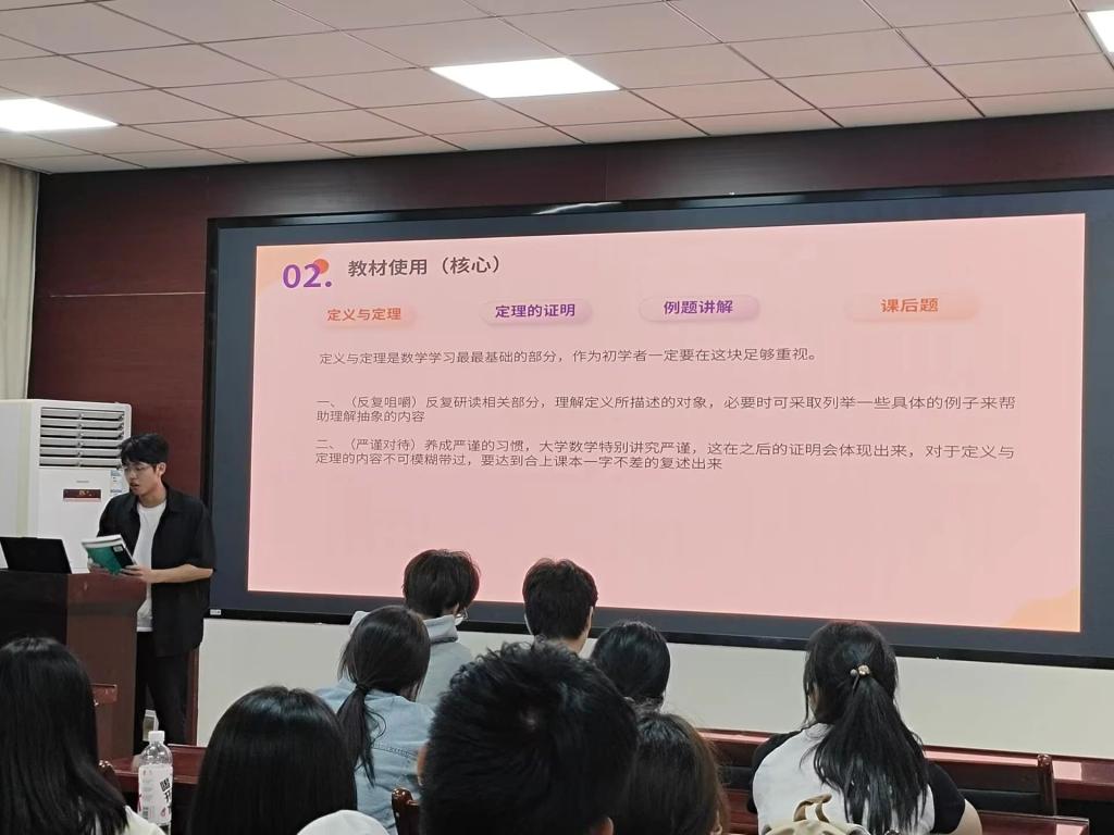 为帮助2024级新生更好地适应老员工活,明确学习目标,掌握专业课高效的学习方法。公司学习部于9月24日在220会议室组织了一场面向2024级数学专业本科新生的专业课学习经验交流会。本次交流会邀请了数学专业2301班优秀员工代表汪夏禹作为主讲人,他向新生们分享了自己在《数学分析》与《高等代数》两门主干课程学习上的心得和宝贵经验。