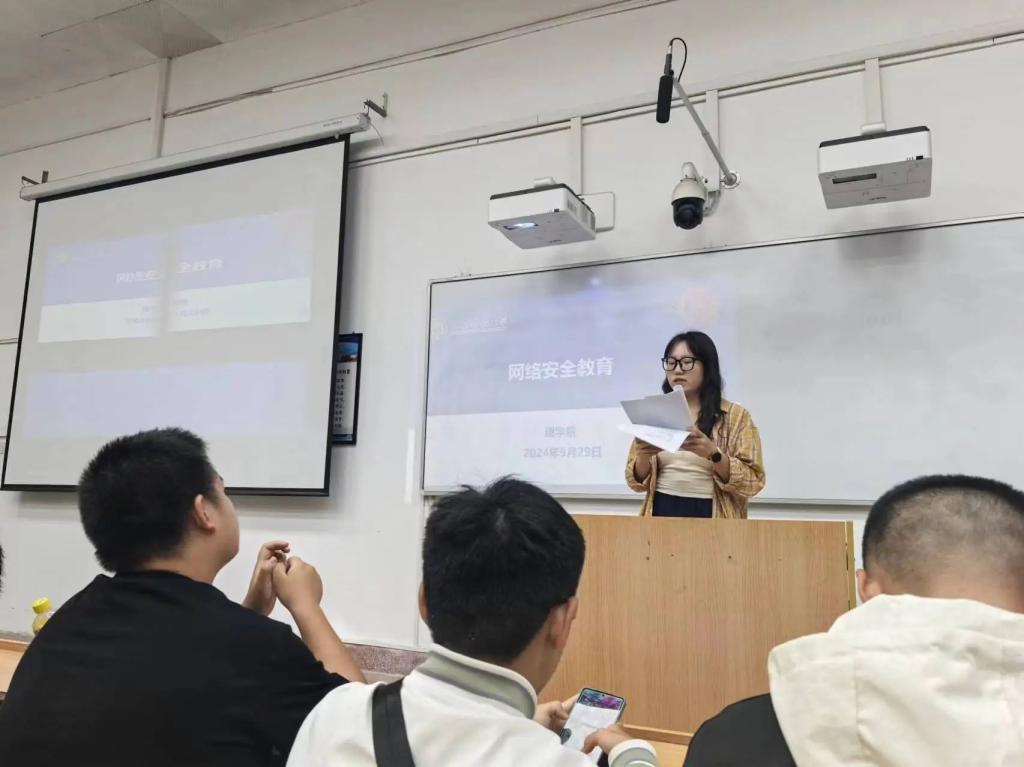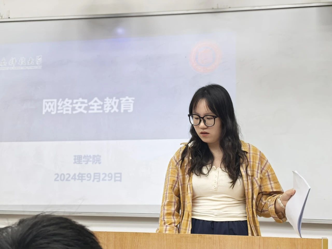 在网络安全知识普及的基础上,薛一丹还结合国庆节假期的特点,对同学们进行了针对性的安全教育。她提醒同学们在假期期间要注意人身安全、财产安全等方面的问题,并给出了具体的防范建议。