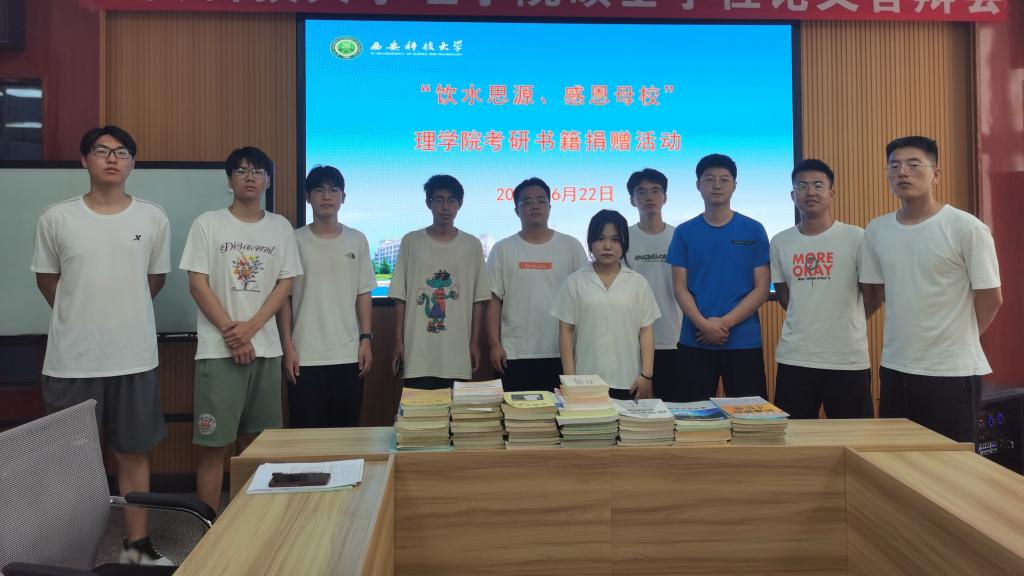 6月22日上午,beats365vip官网登录入口在实验楼208会议室开展了“饮水思源、感恩母校”——毕业生 考研书籍捐赠活动。2022届毕业生共计捐赠近百本考研书籍,被捐赠的考研书籍将摆放至公司考研自习室,供公司23届备考员工使用。