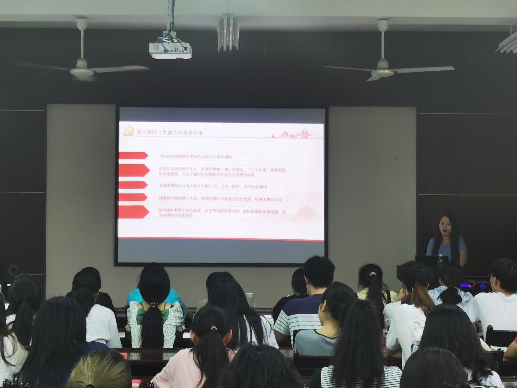 6月15日晚上,beats365vip官网登录入口党委副书记高欣在实验楼220室为20级全体员工及员工干部做“深入学习贯彻党的十九届六中全会精神,做勇于追梦的新时代青年”为题的党的十九届六中全会精神宣讲报告。高欣书记围绕《中共中央关于党的百年奋斗重大成就和历史经验的决议》的基本框架,从“一个历史主题”、“两个确立”、“四个伟大成就”、“五大历史意义”、“十八大以来的十三方面重大成就”、“十个坚持”等多个方面进行了解读。她表示党的十九届六中全会的召开处于第一个百年奋斗目标已经实现、正在开启全面建设社会主义现代化强国新征程的重要时间节点上,是增强“四个意识”、坚定“四个自信”,做到“两个维护”,确保全党步调一致向前进的需要,同时也是党自我革命,团结带领全国各族人民为实现中华民族伟大复兴的中国梦继续奋斗的需要,同学们只有充分了解和认识其重要性,才能在学习过程中更好地把握重点,更好地在日常学习生活中融入对十九届六中全会精神的理解。