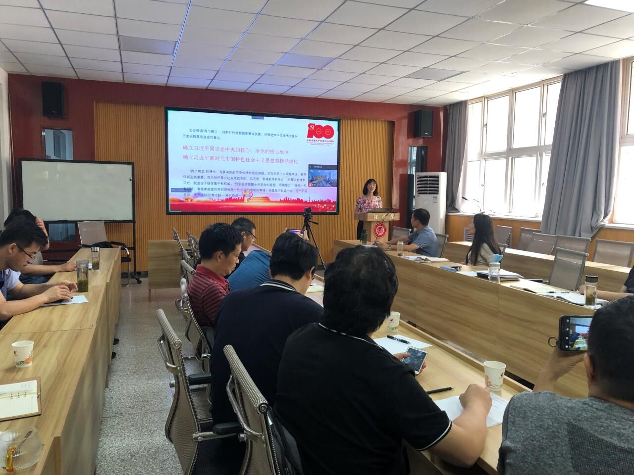 党委副书记高欣以教育部公开曝光的第九批7起、第八批8起违反教师职业行为十项准则典型案例,党委书记孙颜红以《十九大以来陕西省高校违纪违法典型案例警示录》中的“虚假言论有代价”“违反防疫要求不如实报告”“虚报科研项目经费”等16个案例对全体教师进行师德师风警示教育。