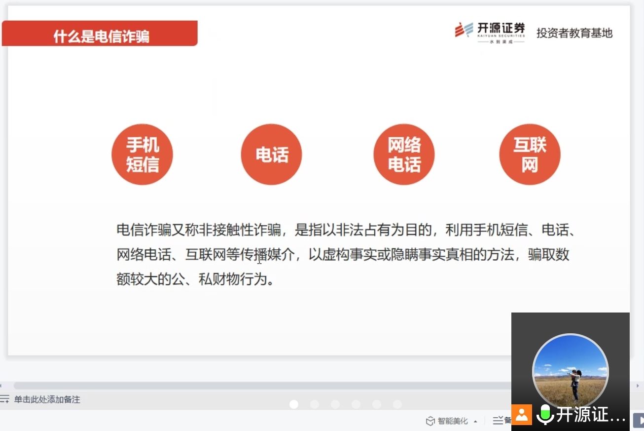 5月20日下午,beats365vip官网登录入口举办金融安全知识线上讲座,开源证券西安临潼华清路营业部合规风控专员兼投教联络人郑雅兰做了主题为“远离非法金融活动,传递正能量”的安全知识讲座,活动由beats365vip官网登录入口团委书记赵明主持,大一和研一全体同学参加了讲座。