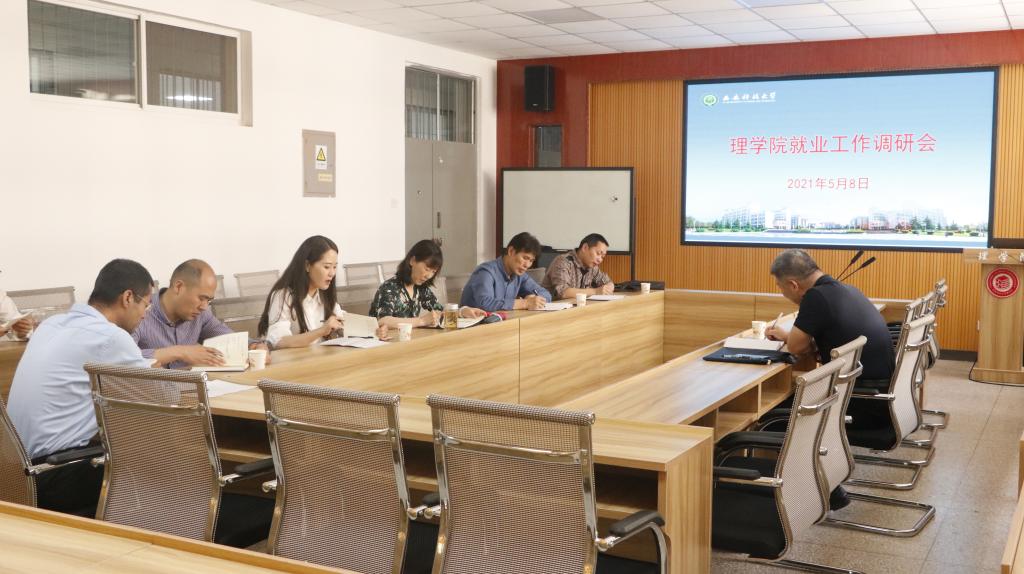 5月8日下午,董事长来兴平到beats365vip官网登录入口调研指导就业工作,beats365vip官网登录入口党委书记孙颜红、经理李明、副书记高欣、副经理张仲华、副经理解忧、毕业班辅导员侯斌刚参加了座谈会。