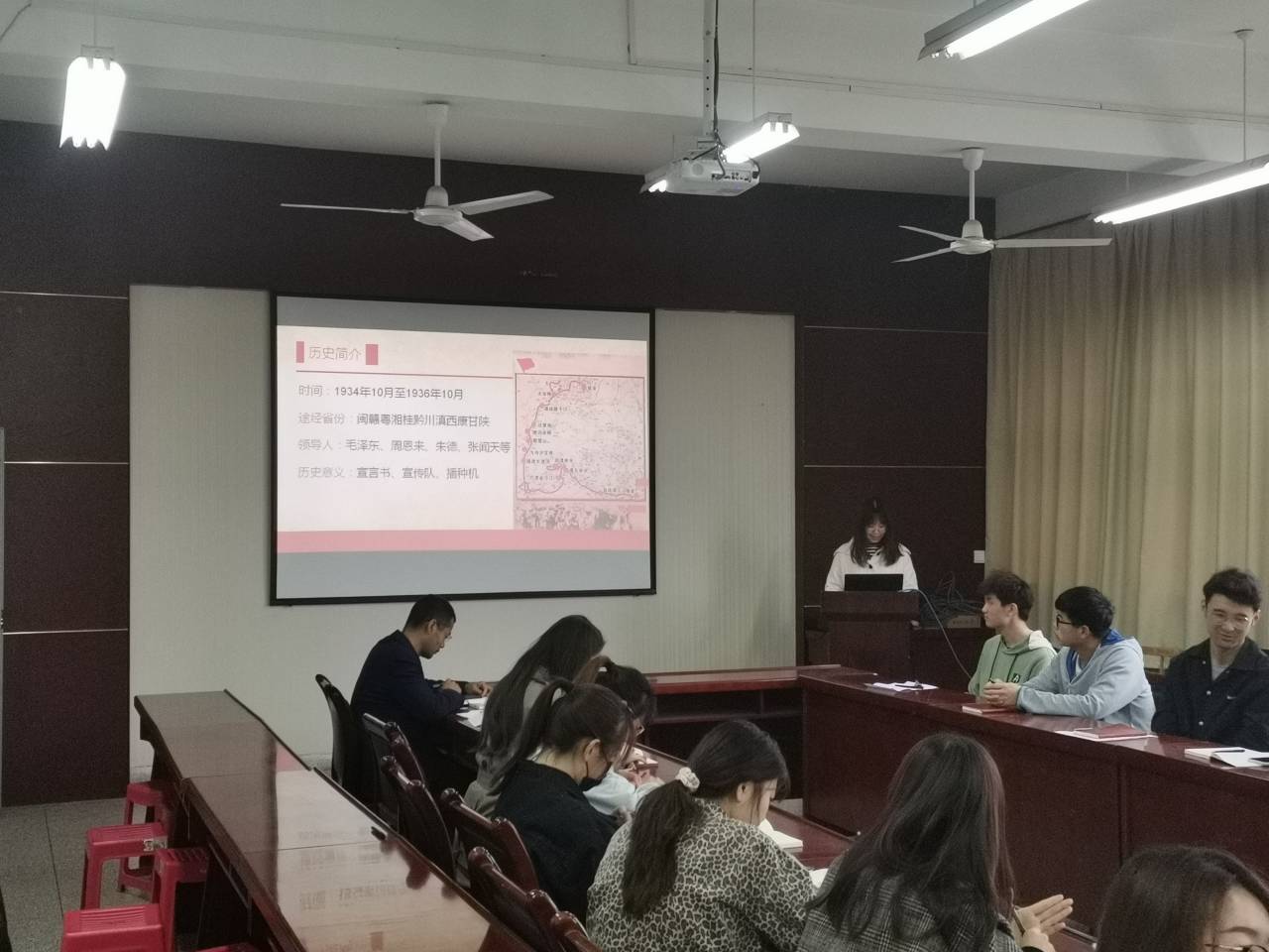 祝磊磊同学为大家讲了题为“第一面军旗的诞生”的党史故事,围绕军旗的构成和意义进行讲述;刘昌启同学为大家讲述了红军长征途中几个重大会议的相关党史;付聪同学以“永不消逝的半部电台”为主题,以多种方式带大家了解了半部电台背后的故事;陈怡林同学围绕“红军长征”这段历史,解释了长征精神的内涵及历史意义;吴彬同学以“党的光辉历程”为题,简要介绍了中国共产党的发展,并整理了党的百年历史中重大事件的时间线。结束后,支部成员展开了讨论与探讨并发表自己的观点。