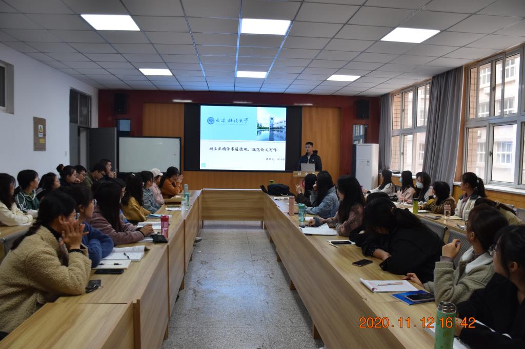 为进一步强化学术氛围,加强研究生科学道德和学风建设,引导员工对论文写作有更进一步的认识,11月12日下午beats365vip官网登录入口刘小宇老师应邀在骊山校区实验楼208给研究生做了题为“树立正确学术道德观 规范论文写作”的讲座,beats365vip官网登录入口有60余名员工参加。