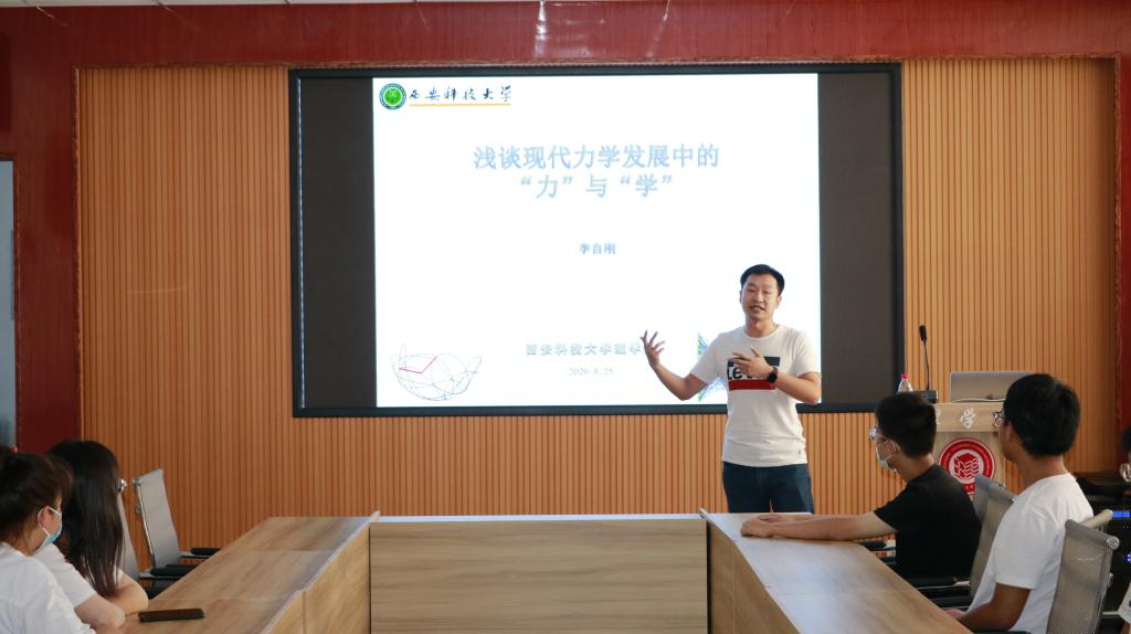 8月25日下午,beats365vip官网登录入口博知讲坛第四讲在临潼校区骊山校园举行,力学系教师、硕士生导师李自刚做了题为《现代力学发展中的“力”与“学”》的报告。报告会由beats365vip官网登录入口团委书记赵明主持,工程力学专业2018、2019级全体同学通过线下和线上聆听了讲座。