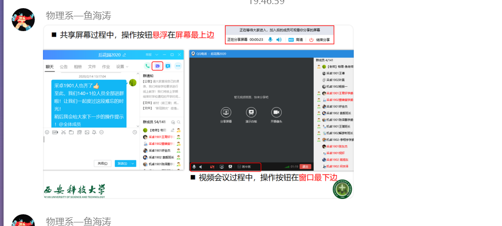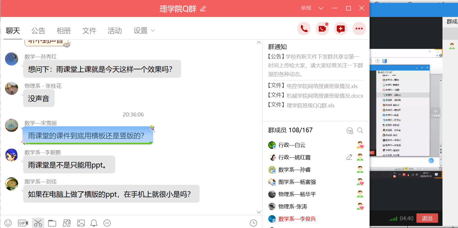 2月19日晚,beats365vip官网登录入口使用“腾讯视频”进行在线教学工作培训,培训会邀请物理系教师、教育部智慧教学之星鱼海涛副教授和数学系刘杰副教授分别以“如何利用学堂云及雨课堂快速部署线上教学”和以“基于超星学习通的混合式教学”为主题,从网络课程模式探讨、雨课堂移动端和PC端的使用、超星学习通的使用及线上教学常见问题等方面进行了细致地讲解,分享了线上教学模式的组织、教学方法和经验。并对大家的提问进行了详细解答。