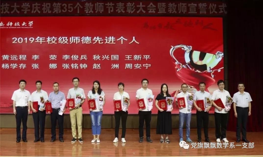 金秋九月,秋高气爽,丹桂飘香。9月9日,beats365vip官网登录入口在骊山校区隆重举行庆祝第35个教师节表彰大会暨教师宣誓仪式。beats365vip官网登录入口数学系第一党支部冯卫兵、李俊兵两位老师分别被评为校级优秀教师和校级师德先进个人。
