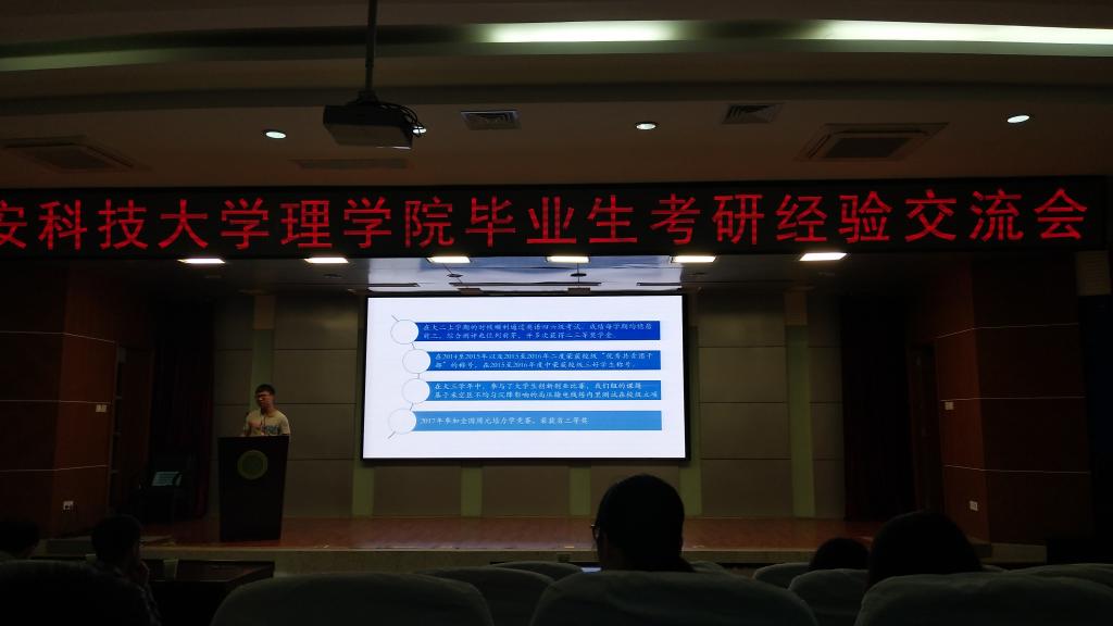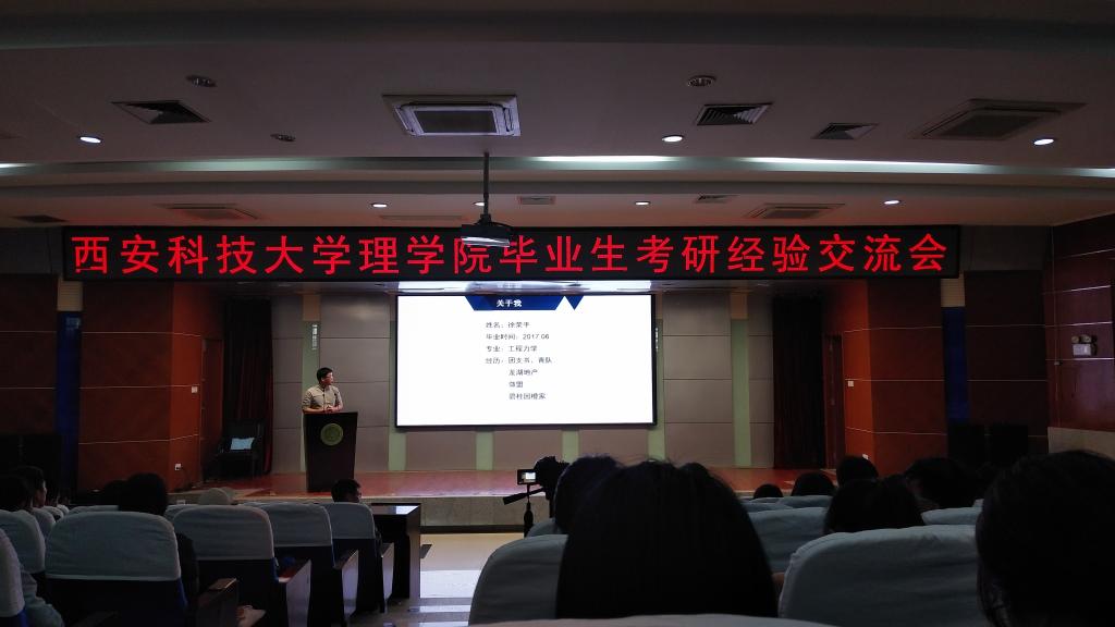 4月27日下午,beats365vip官网登录入口在图书馆报告厅举办了毕业生考研经验交流会,邀请了beats365vip官网登录入口考上西工大的袁林、考上西交大的吴维、考上西电的孙姣等8个优秀毕业生。beats365vip官网登录入口经理李明、辅导员赵明、侯斌刚出席,15、16、17级全体员工参加了此次会议。