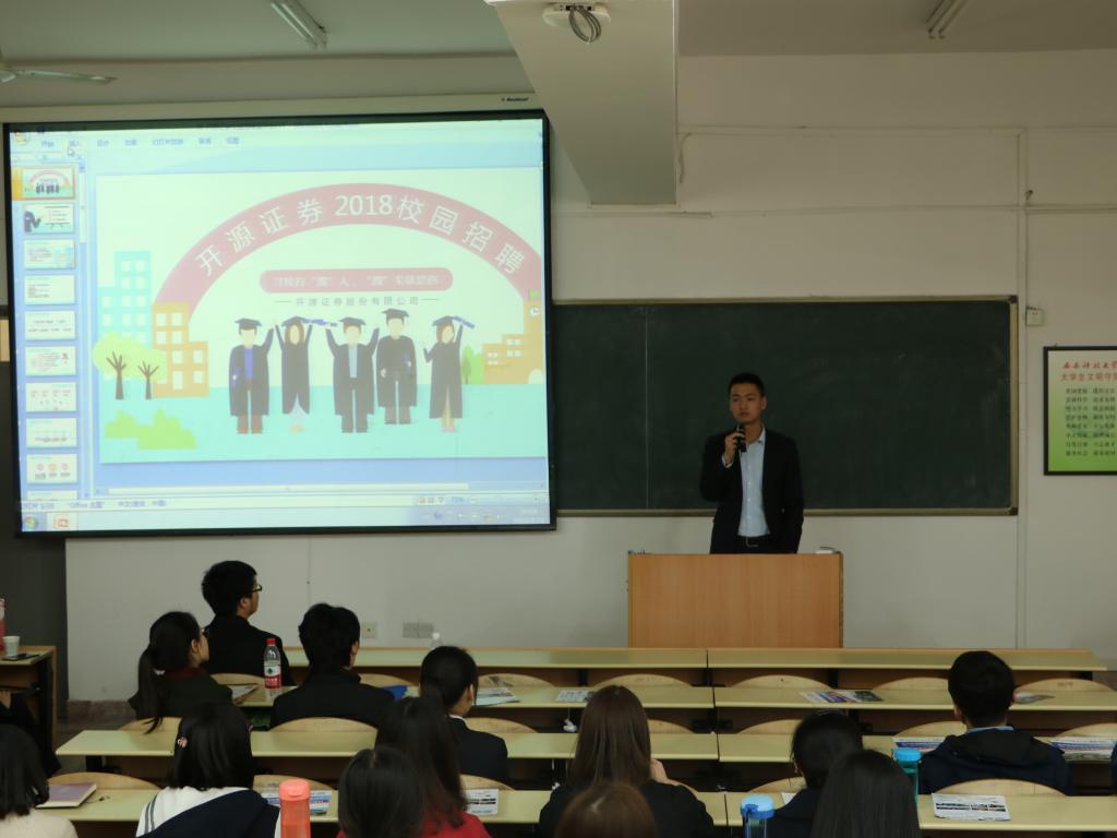 3月23日下午,公司邀请开源证券股份有限公司来校召开宣讲招聘会,招聘会在3教307教室举行,各院部分大四毕业生参加了招聘会。