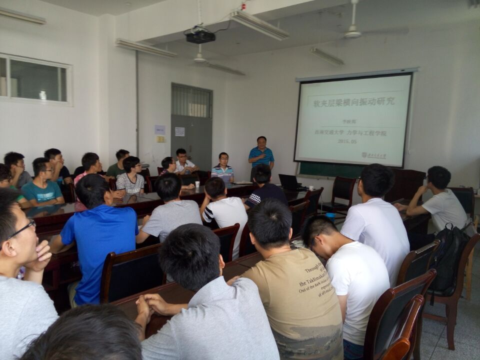 5月27日,西南交通大学力学与工程公司副经理、博士生导师李映辉教授一行2人来公司beats365vip官网登录入口交流访问。27日下午,李映辉教授在beats365vip官网登录入口会议室做了题为《软夹层梁横向振动研究》的学术报告,报告基于细长的欧拉伯努力梁建立了一类新的夹层梁模型,研究了梁的理论及相应的控制方程,对其动力学性态进行了详细分析,并和师生就力学学科的一些前沿问题进行了积极探讨。报告会后,李教授一行又与beats365vip官网登录入口教师对员工培养及团队建设情况进行了交流,共有70余名师生参加了报告会。