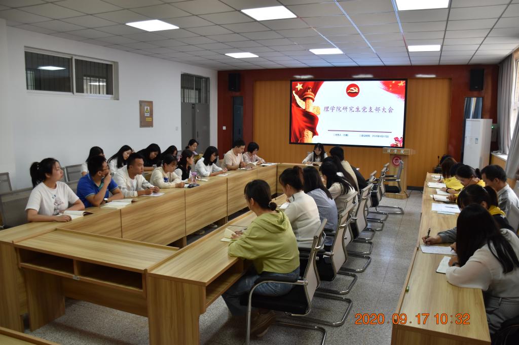 2020年9月17日上午9:30 beats365vip官网登录入口研究生党支部在实验楼208召开了新学期第一次支部大会。参加本次大会的正式党员27名,预备党员1 名,共28名。支部副书记吴利娜主持了本次会议,会议主要分两部分举行:
