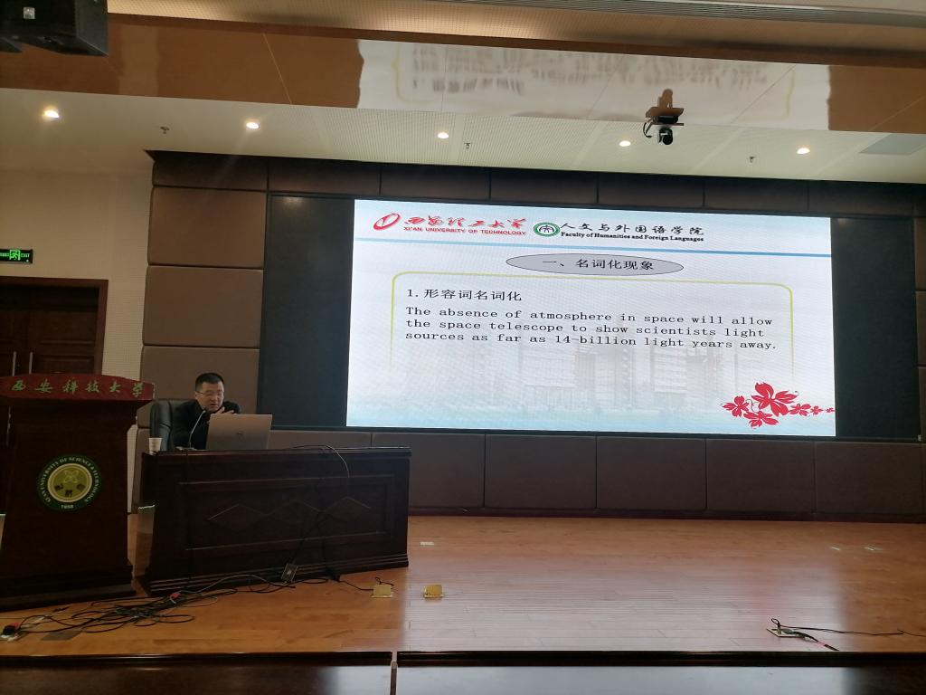 报告会上,延宏以《研究生学术英语语言核心要素与写作要旨》为主题,针对国际重要期刊论文写作中的学术语言使用特点与规范,对英语学术论文三大显著句式特征——名词化现象、被动语态、非谓语动词短语等进行了深入探讨。延宏以用翔实的句例分析了学术英语名词化的实现方式,探析了被动语态在学术英语中的使用原因与应用语境,介绍了非谓语动词短语在学术英语中的语法功能与使用规范,并对其特点和规律进行总结。