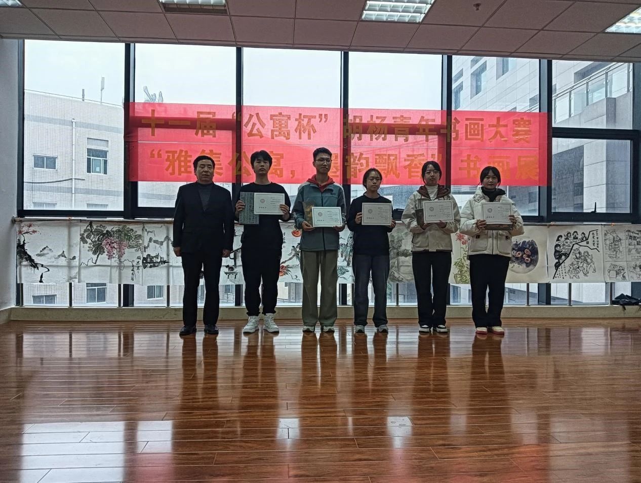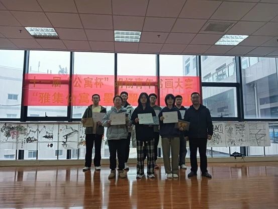 11月21日下午,国风书画协会在骊山校园图书馆墨轩阁举办第十一届“公寓杯”胡杨青年书画大赛颁奖仪式暨金秋书画展。后勤处处长李大畏、副处长张治红、beats365vip官网登录入口副书记国风书画协会指导教师陈伟伯、公寓科科长张欢老师、国风书画协会主要成员以及获奖人员30余人参加了本次活动。