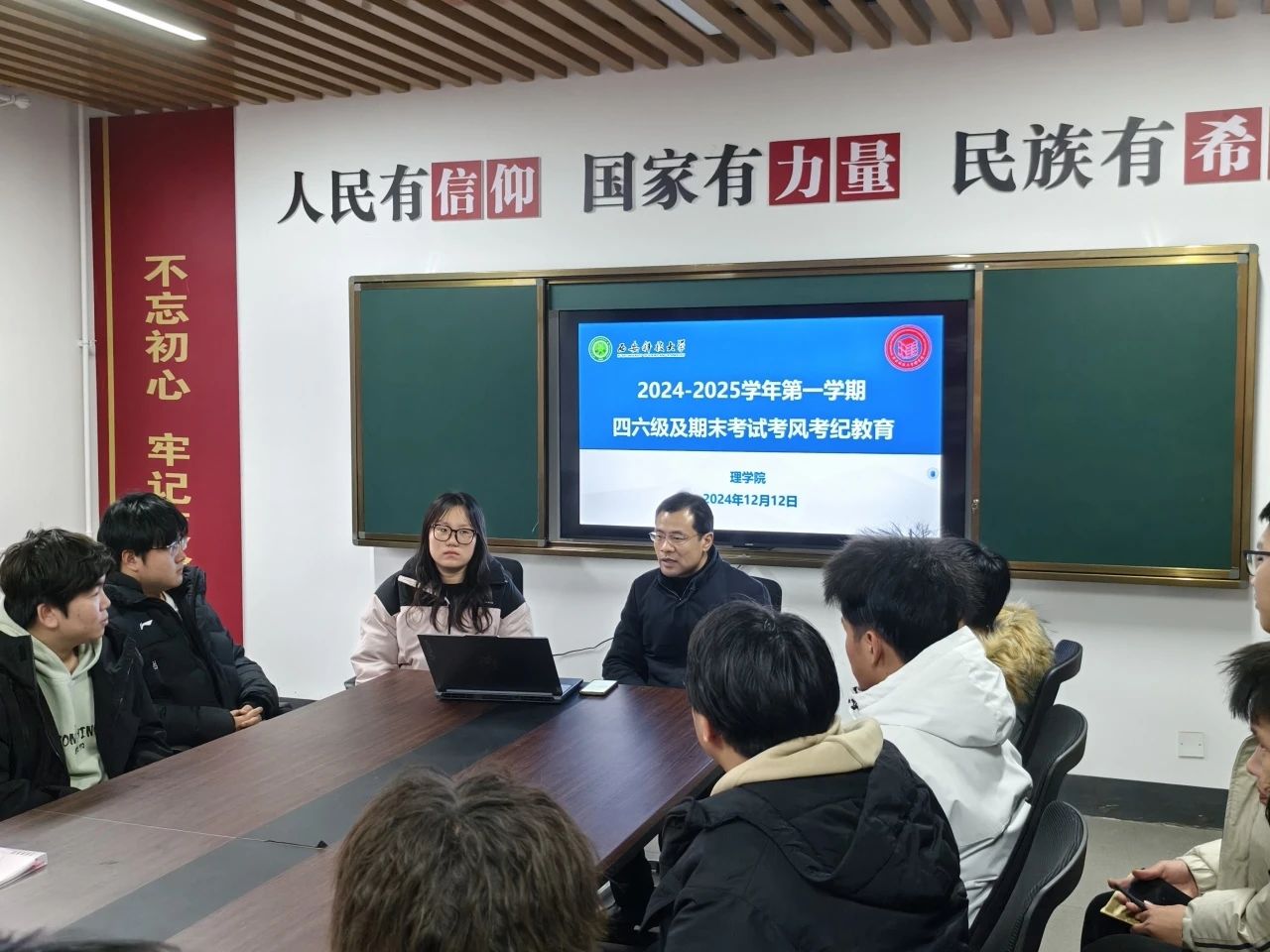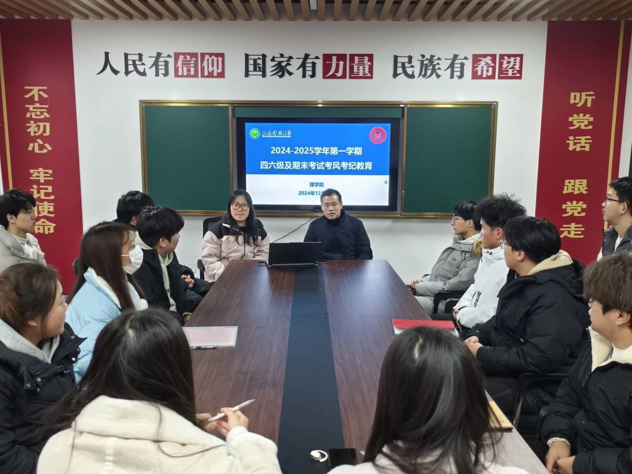 为营造优良学风,严肃考风考纪,助力员工学业提升与个人成长,确保四六级考试及期末考试顺利进行,12月12日,beats365vip官网登录入口于一站式社区召开了英语四六级及期末考试考风考纪教育会议,本次会议由院学工办主任侯斌刚和2024级辅导员薛一丹主持,2023级和2024级各班班长、团支书、学习委员参加。