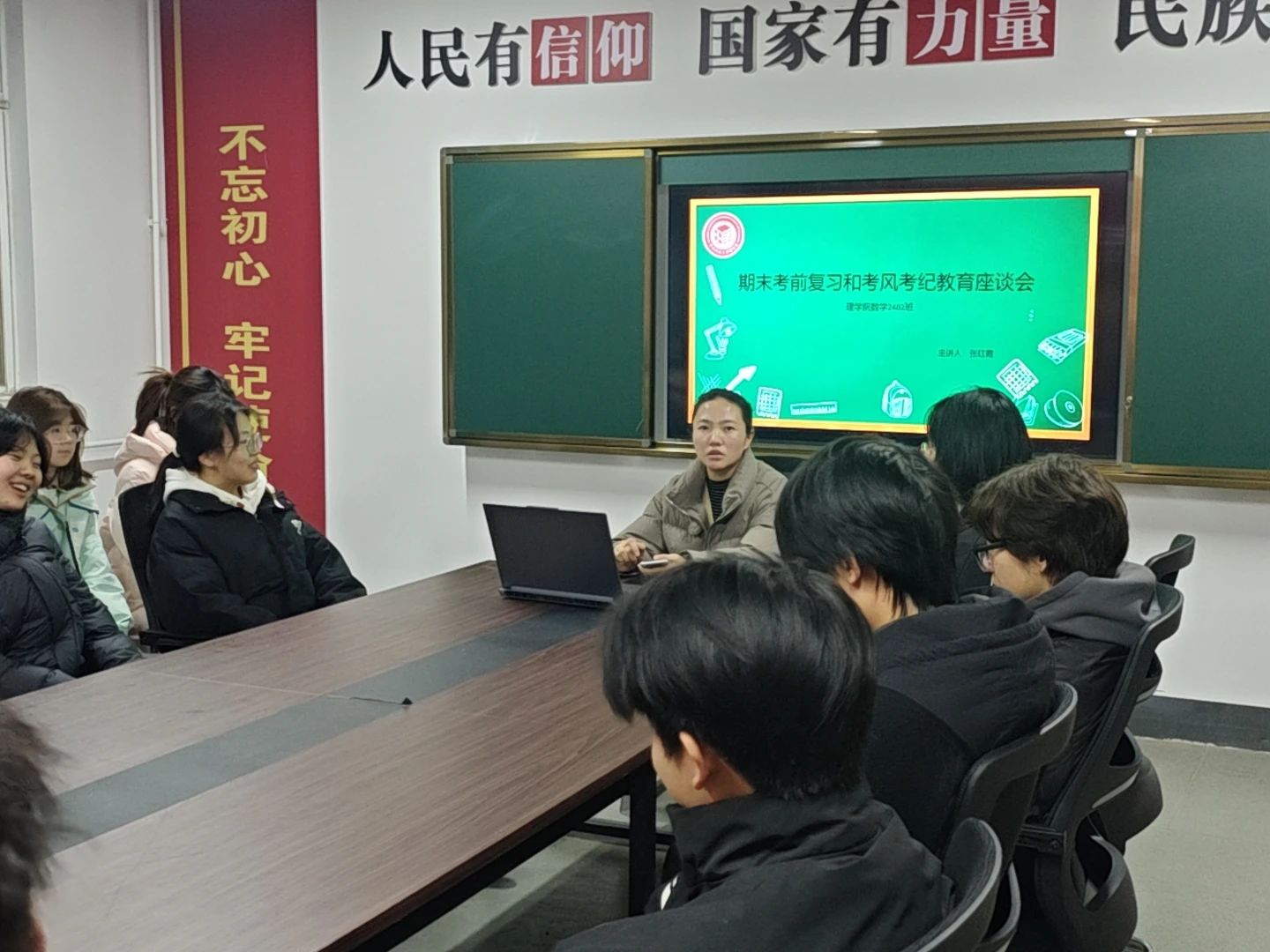 12月13日,beats365vip官网登录入口于“一站式”员工社区举办了期末考前复习和考风考纪教育座谈会,本次座谈会由数学与应用数学2402班班主任张红霞主持,数学与应用数学2402班参加。