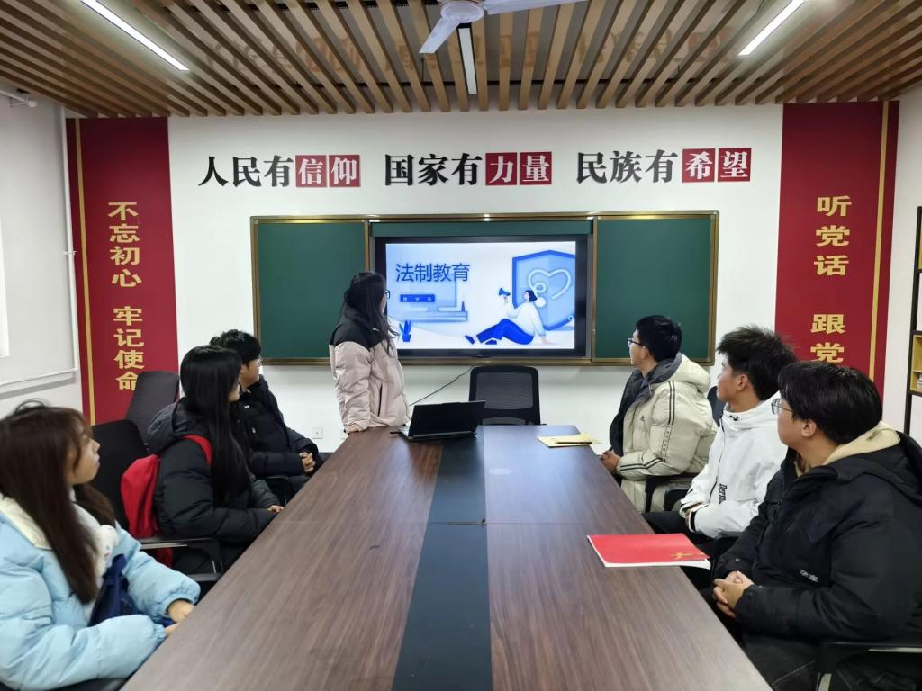 为增强员工的法制观念,提高员工的法律意识,营造文明、平安、和谐的校园育人环境,12月11日,beats365vip官网登录入口于“一站式”员工社区开展了法制教育主题班会。本次班会由2024级辅导员薛一丹主持,2024级各班班长、团支书和学习委员参与。