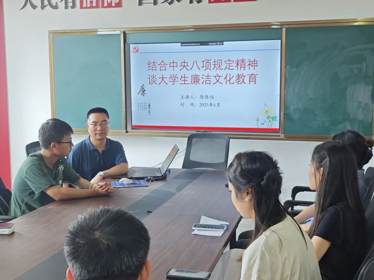 陈伟伯带领全体党员深入研读中央八项规定精神相关读本。他结合读本内容,从改进调查研究、精简会议活动、精简文件简报、规范出访活动、改进警卫工作、改进新闻报道、严格文稿发表、厉行勤俭节约等方面,对中央八项规定进行了全面细致的讲解。陈伟伯强调了八项规定和中央八项规定精神的不同之处,指出我们普通党员所要学习与遵守的主要是中央八项规定精神。