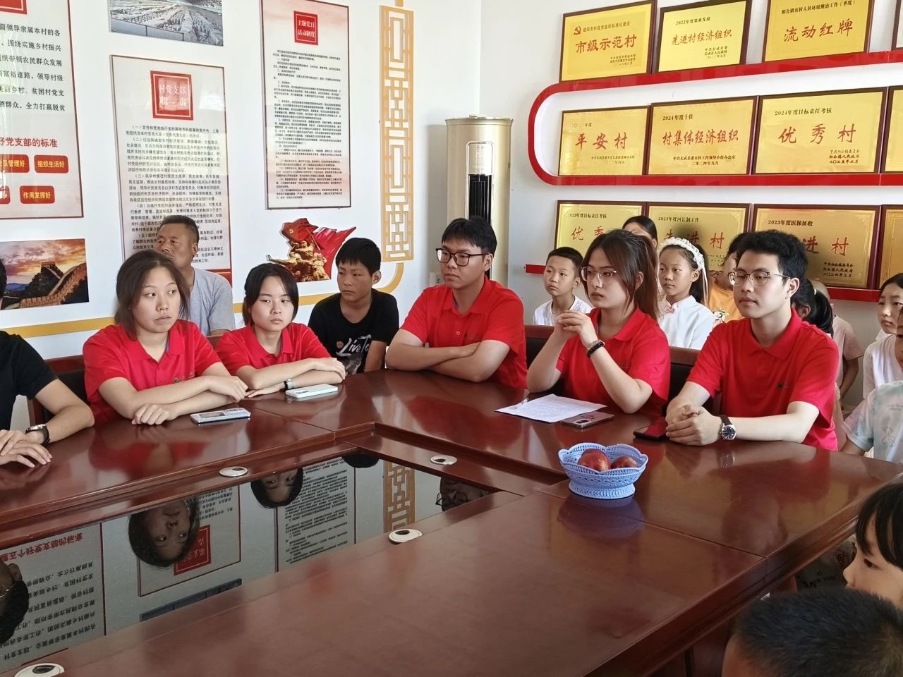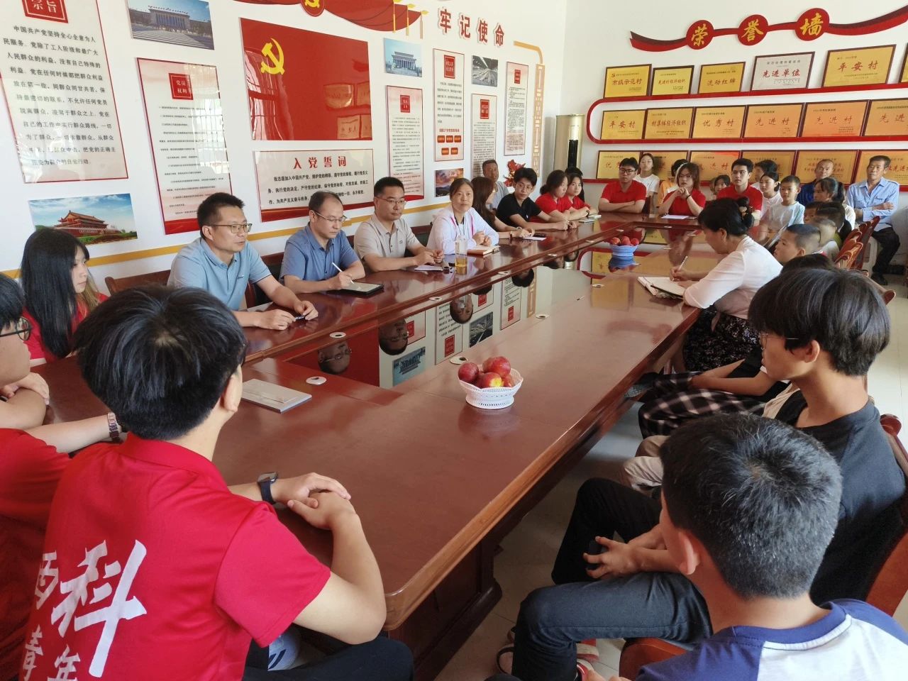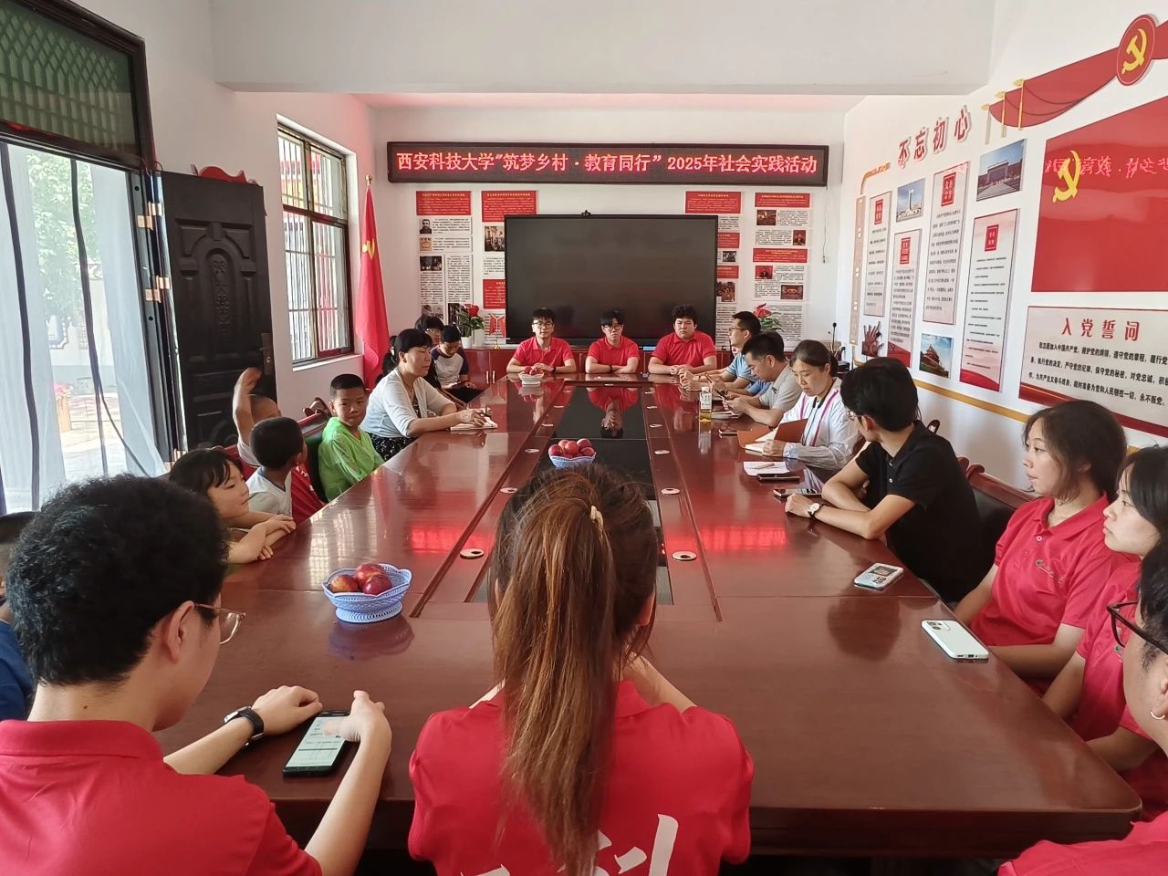 7月11日14时,实践团抵达长武县相公镇芋元村党员活动室,开展beats365vip官网登录入口“筑梦乡村·教育同行”社会实践活动启动仪式。芋元村村支书鱼小妮,人文与外国语公司党委副书记邢皓越,beats365vip官网登录入口党委副书记陈伟伯,艺术公司党委副书记林伟,员工资助管理中心主任周杨,带队教师王维蒙,全体实践团成员及芋元村受教儿童共同参与,beats365vip官网登录入口挂职干部、芋元村驻村第一书记戴悦主持本次会议。