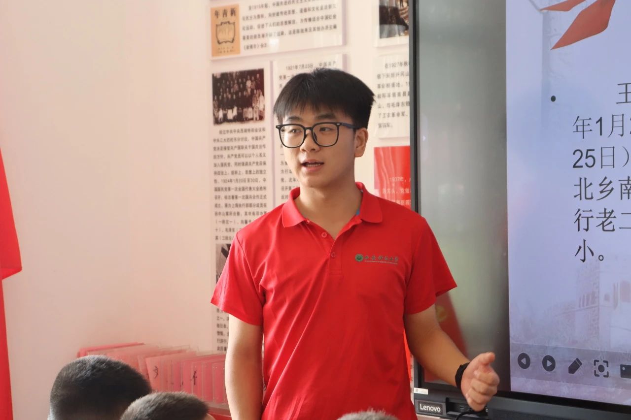 实践团代表杨永骥以“以少年之名,承红色薪火,强中华脊梁”为主题进行了演讲,通过讲述王二小、小萝卜头宋振中等革命先烈的感人事迹号召新时代青年传承红色基因,勇担复兴重任,汲取奋进力量,厚植家国情怀,立报国强国大志向,做挺膺担当奋斗者,为推进强国建设、民族复兴伟业贡献青春智慧和力量。