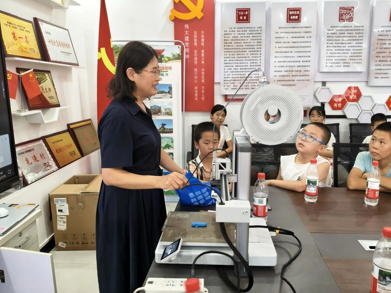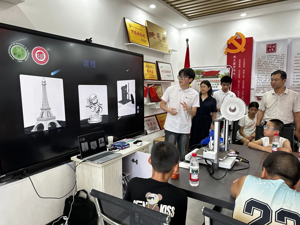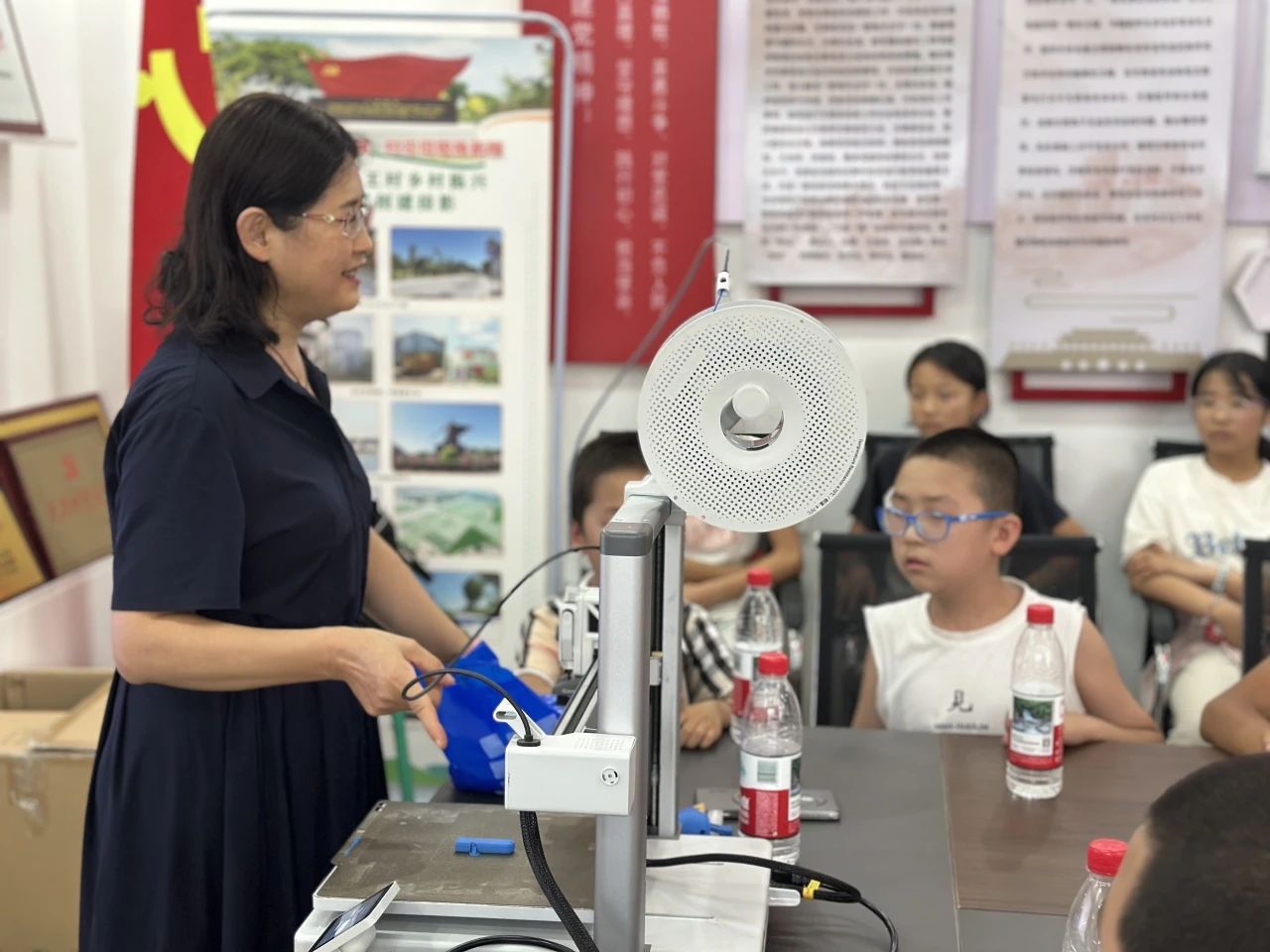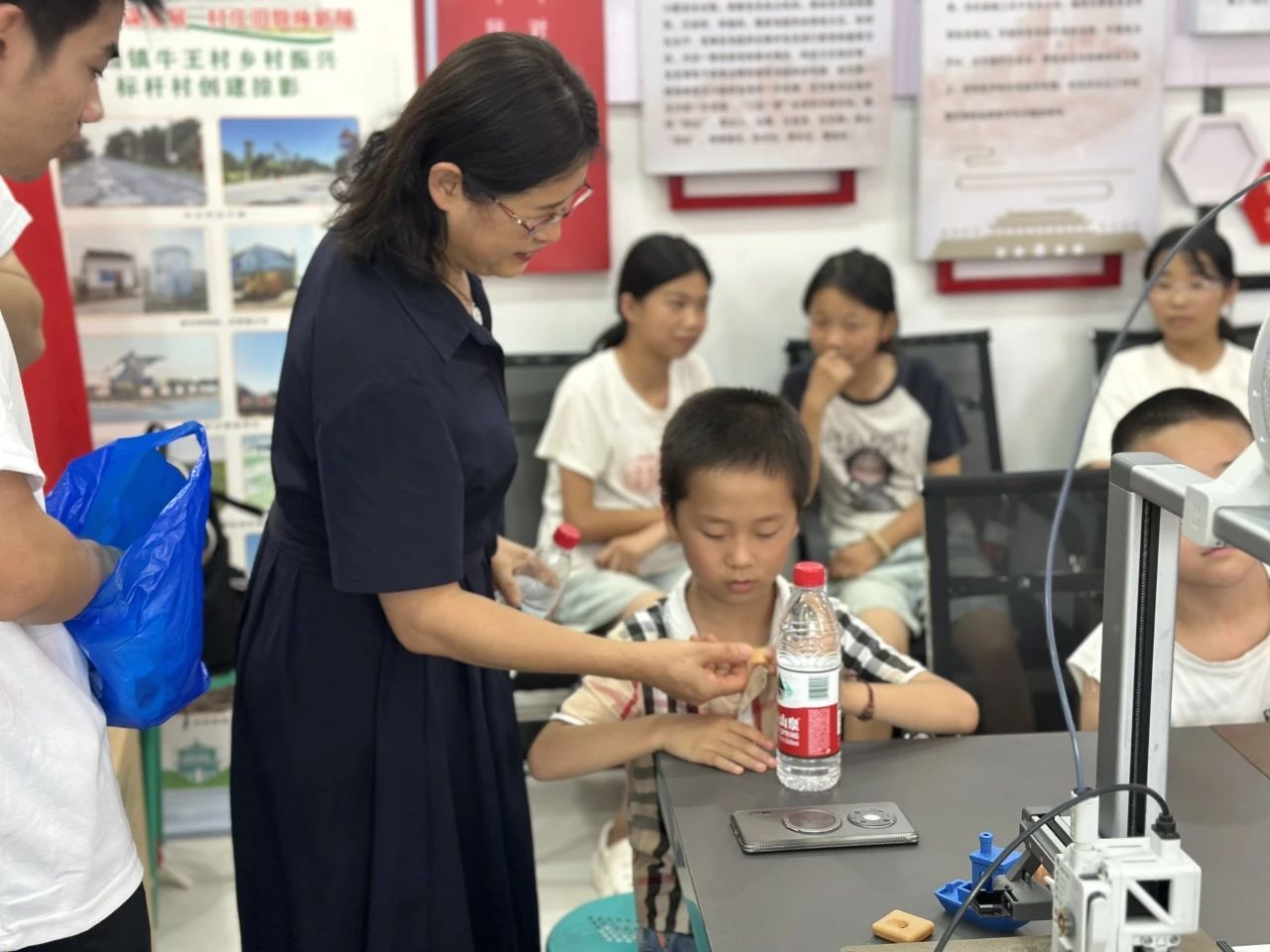 宋岩星同学进行了3D打印讲解。他通过生动的案例和实物展示,将复杂的3D打印原理转化为孩子们能听懂的语言,让孩子们亲眼见证虚拟模型变为实体的神奇过程,激发了他们对科技的好奇心。