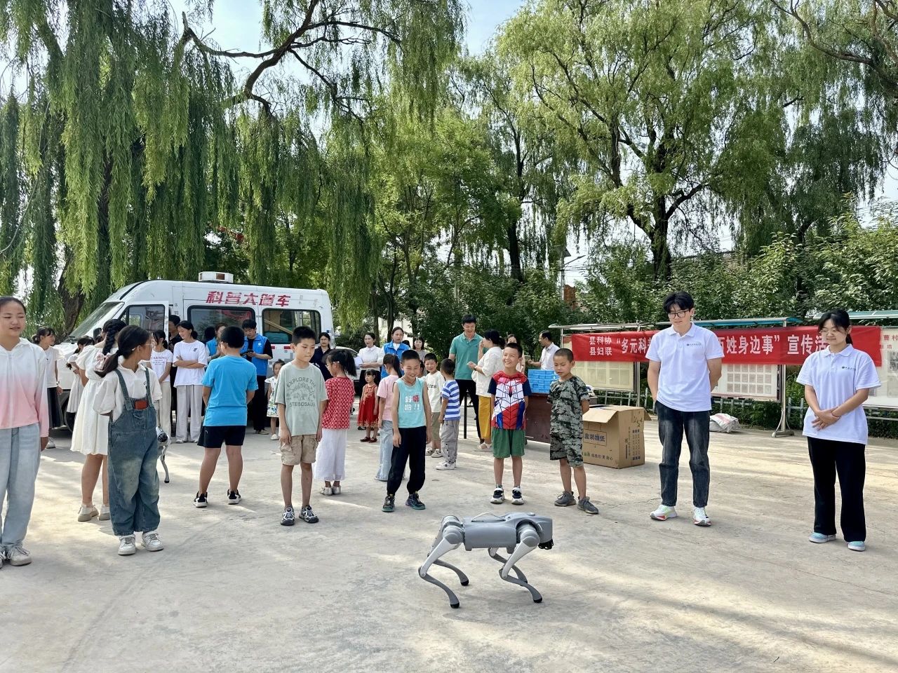 长武县科协的大篷车成为了孩子们眼中的焦点。车中展出的机器狗吸引了众多同学的目光,在工作人员的指导下,同学们纷纷体验了操纵遥控的乐趣,感受着科技带来的奇妙魅力。长武县妇联副主席李宁、科协主任、公司团委书记侯斌刚以及图学系副教授刘佳等一行人,为孩子们发放了科普纪念品,激励着孩子们对科学探索的热情。