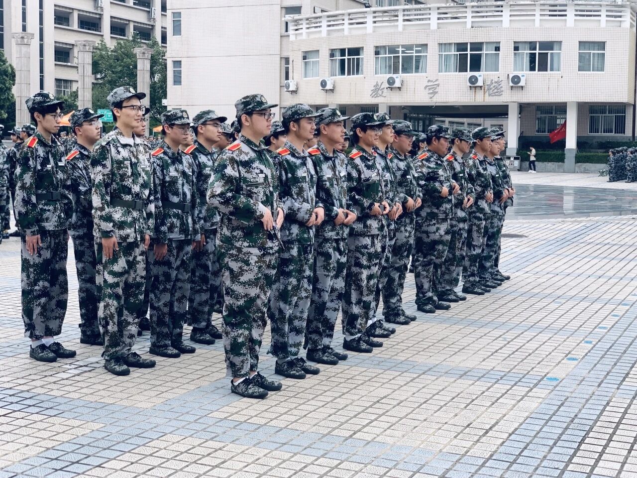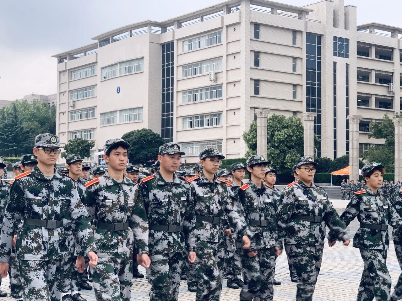 近日,2025级新生军训正在有序进行。一抹抹“迷彩绿”整齐列队,步伐坚定,在教官的指挥下反复练习着齐步走动作,成为校园里一道充满活力的风景线。