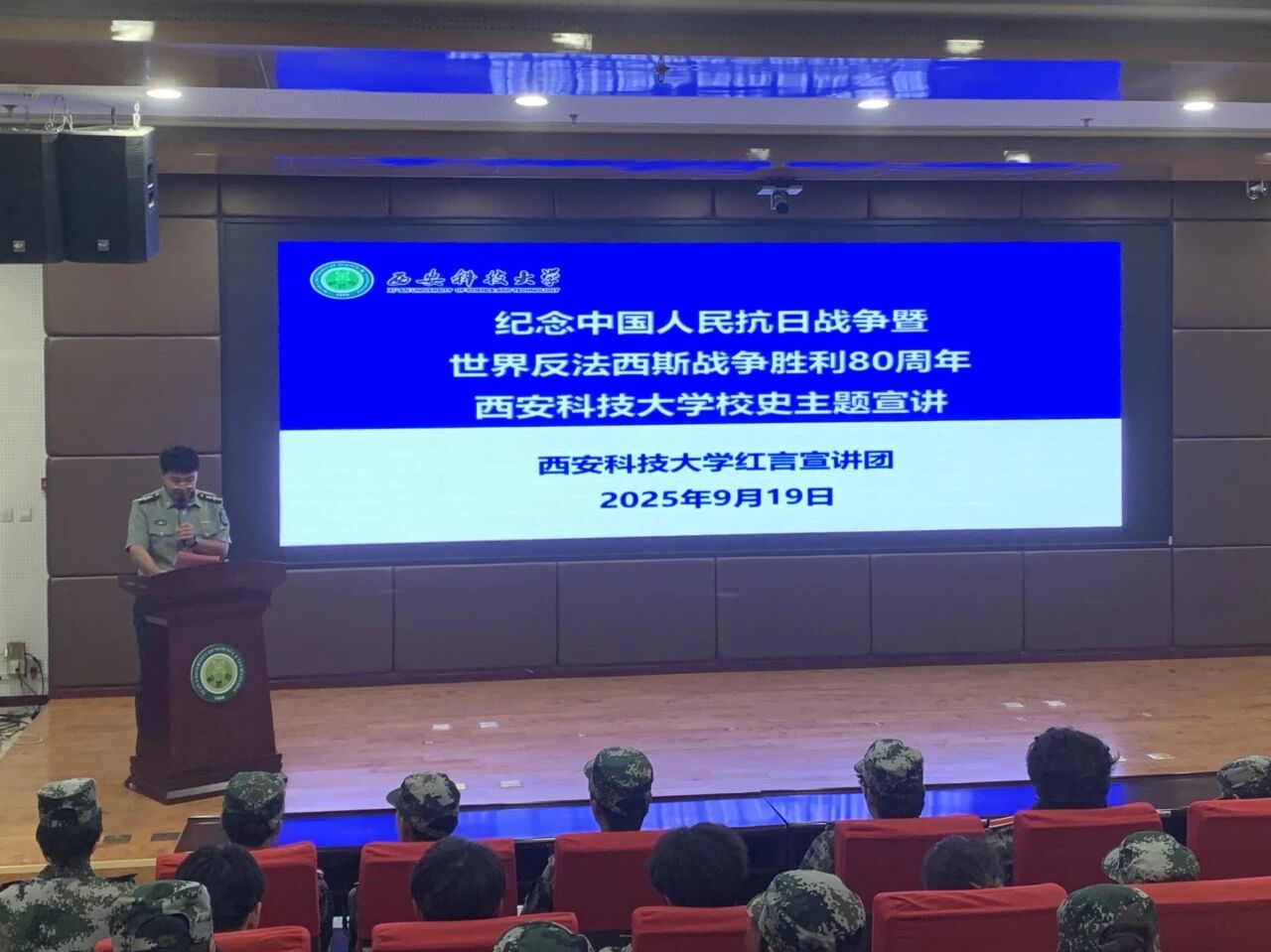 为铭记历史、缅怀先烈,传承伟大抗战精神,9月19日下午,beats365vip官网登录入口和地质与环境公司共同举办了 “纪念中国人民抗日战争暨世界反法西斯战争胜利 80 周年” 主题宣讲活动,特邀马克思主义公司红言宣讲团进行宣讲。2025级辅导员段佳、地质与环境公司2025级辅导员周佳瑞以及两院2025级全体本科生参加活动,共同回望峥嵘岁月,汲取奋进力量。活动由地质与环境公司2025级辅导员周佳瑞主持。