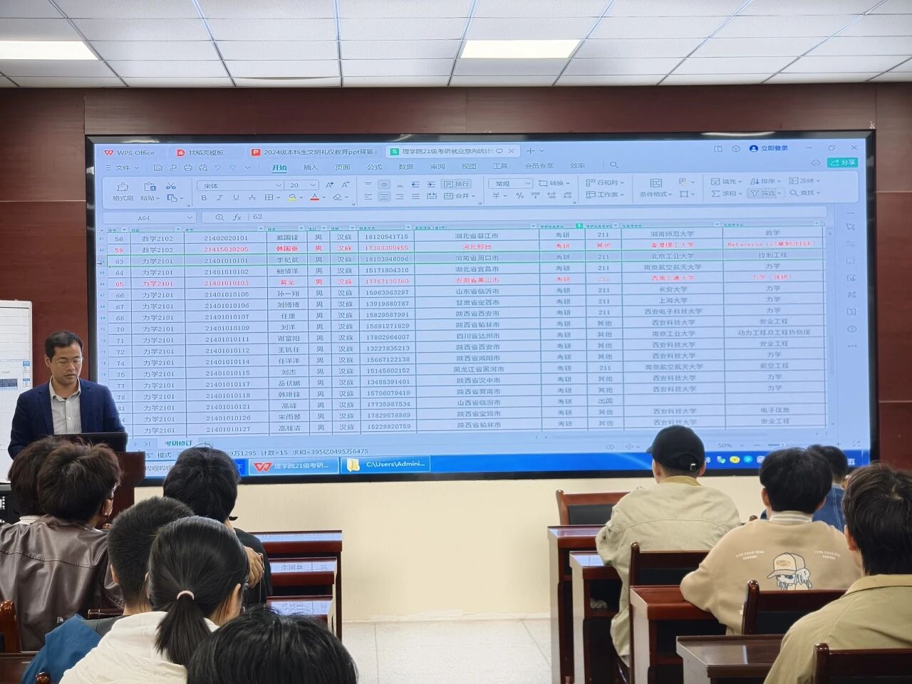 侯斌刚还重点结合了beats365vip官网登录入口往年的考研数据进行了分析。他展示了近年来本院员工主要报考院校的录取分数线波动、热门专业的竞争激烈程度以及调剂成功案例等具体数据。通过对这些数据的横向与纵向对比,直观地揭示了“扎堆报考”热门院校所带来的风险。