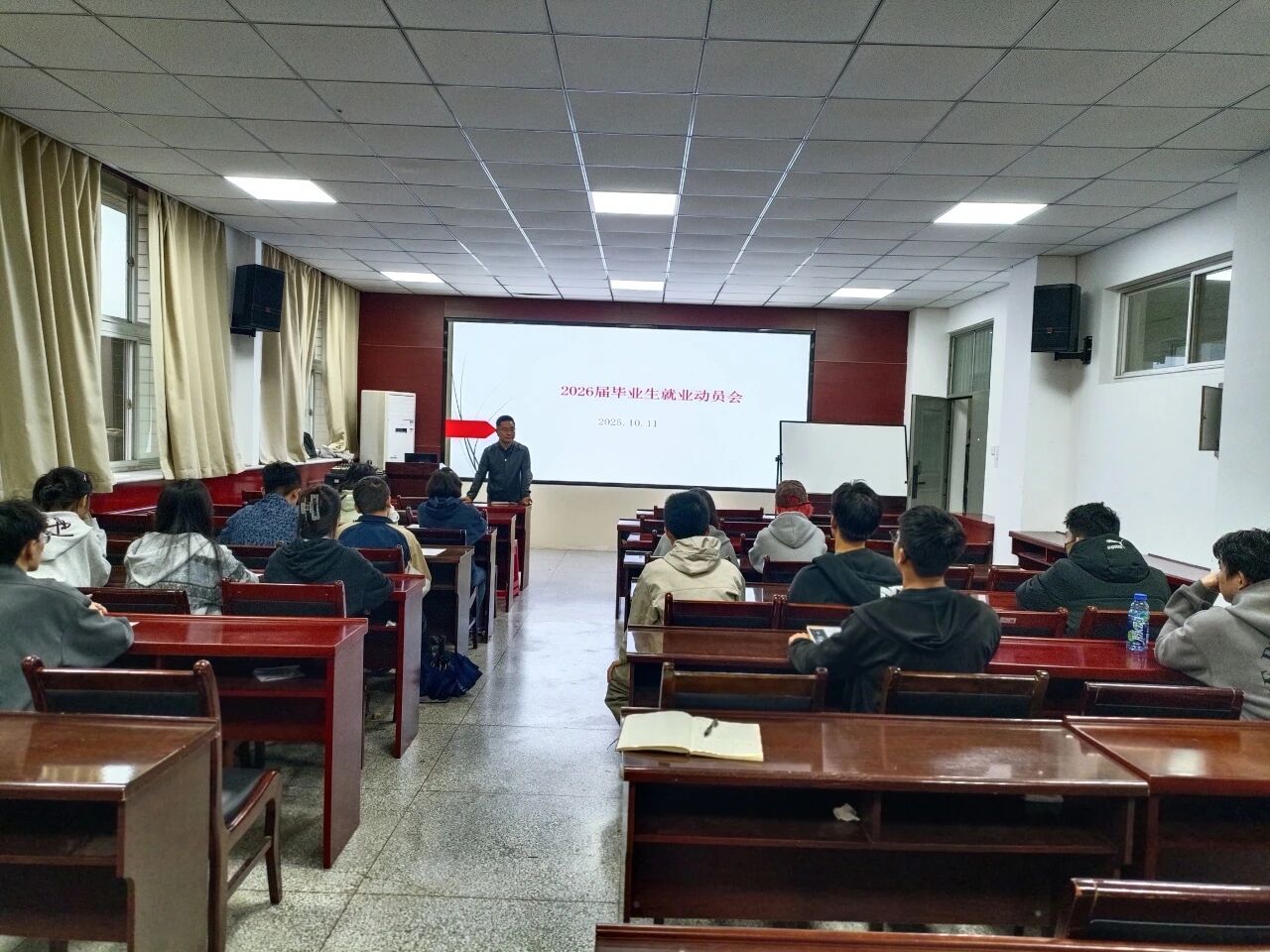陈伟伯首先指出,本次会议旨在引导同学们认清当前严峻的就业环境,明确个人目标,为即将到来的毕业季与人生新阶段做好全方位准备。他强调,大四是承前启后的关键转折点,同学们必须增强紧迫感,尽早规划,积极行动。