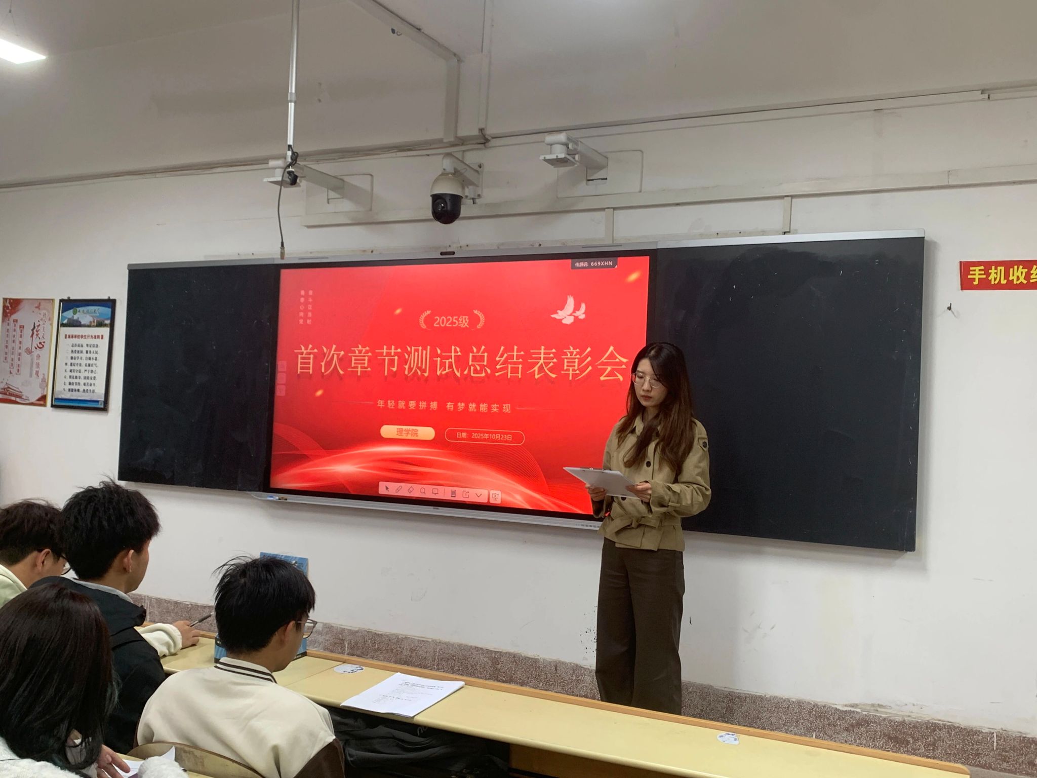 为对开学以来的学习情况进行阶段性总结,激励全体同学共同进步,10月23日,beats365vip官网登录入口于3-207教室举办了2025级首次章节测试总结表彰会。会议由2025级辅导员段佳主持,公司党委副书记陈伟伯和2025级全体本科生参加活动。