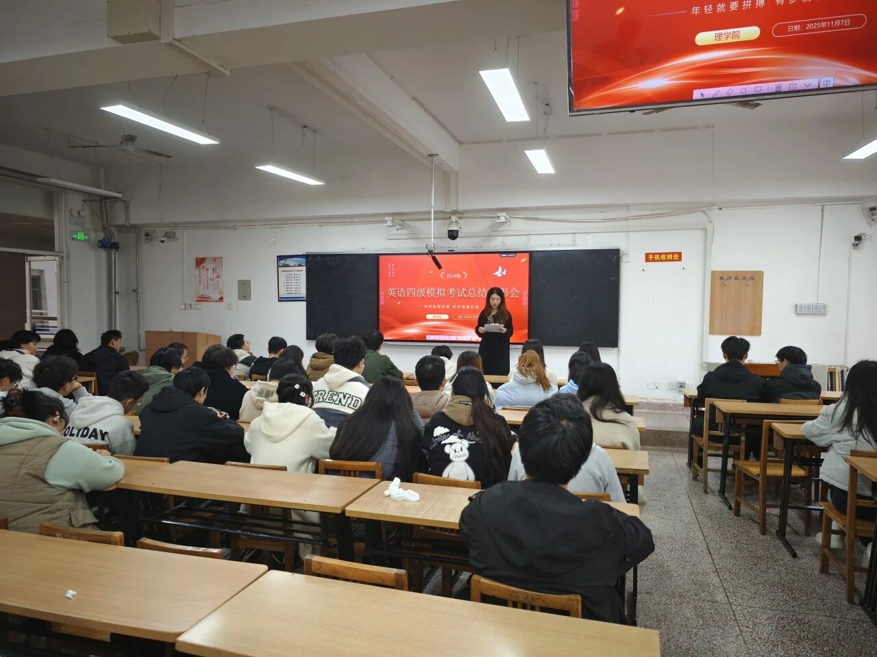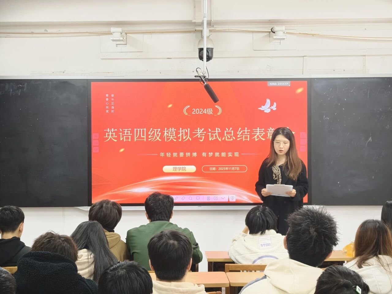 为总结备考经验,表彰先进典型,激发学习热情,11月7日,beats365vip官网登录入口于3-513教室举办了2024级英语四级模拟考试总结表彰会暨“榴园追梦”榜样引领报告会。会议由2024级辅导员段佳主持,院团委书记侯斌刚及2024级全体本科生参加。