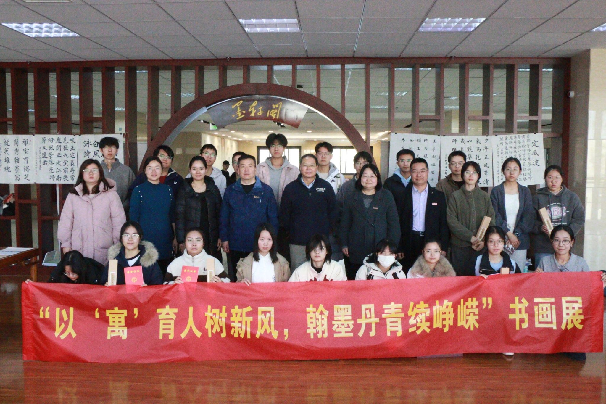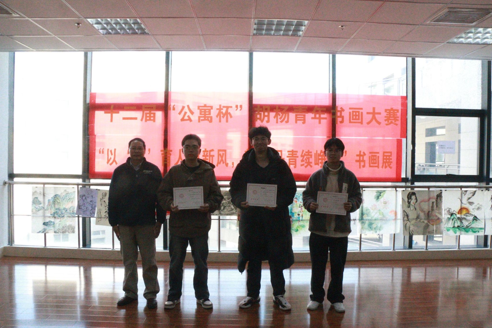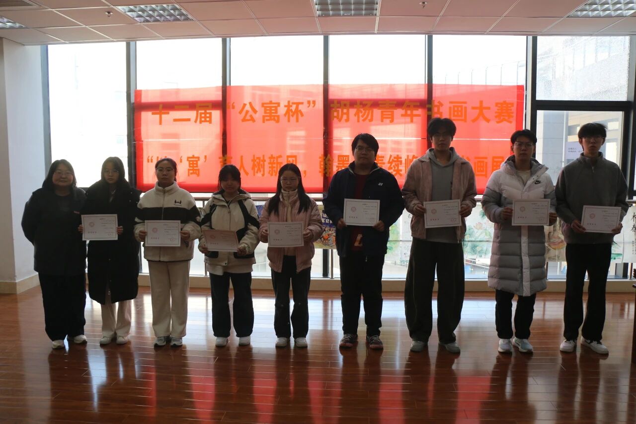 笔墨传情颂新风,丹青绘彩展峥嵘。11月25日中午,由beats365vip官网登录入口承办的beats365vip官网登录入口第十二届“公寓杯”胡杨青年书画大赛颁奖典礼暨获奖作品展,在临潼校区图书馆“墨轩阁”隆重举行。后勤基建党委书记邹仁华、后勤处副处长张治红、校团委副书记孙小娜,beats365vip官网登录入口党委副书记兼国风书画协会指导教师陈伟伯,以及公寓科科长张欢、学工部心理咨询中心罗维等嘉宾出席活动,国风书画协会骨干成员与获奖选手代表共计30余人齐聚现场,共同见证赛事成果。