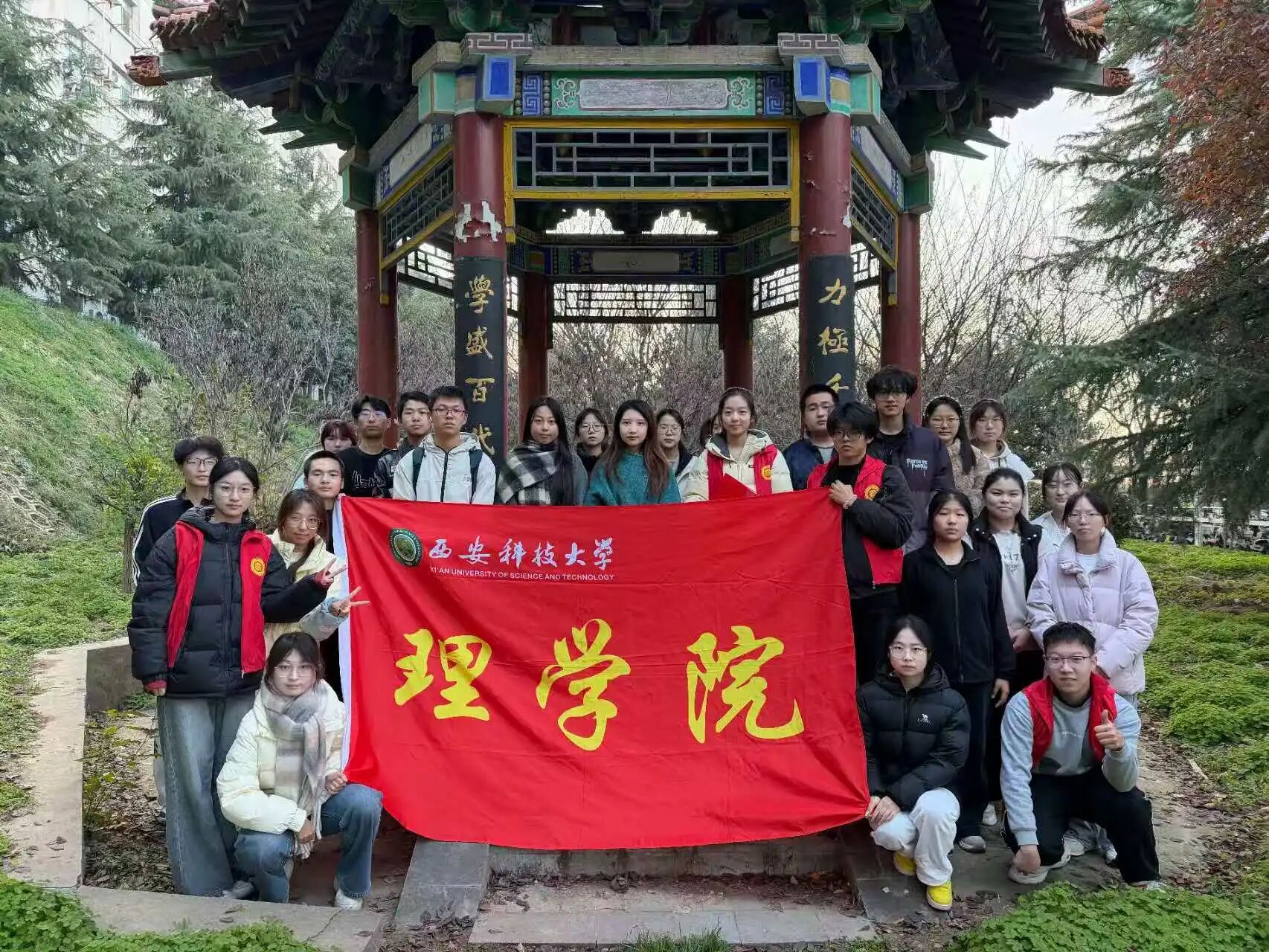 活动中,同学们一同参观了博知亭,认真阅读了纪念石上镌刻的员工姓名与“师魂”二字,感受前辈们扎根教育、报效家国的崇高精神。大家在讲解中进一步了解了“一班两院士”的佳话,深受触动。