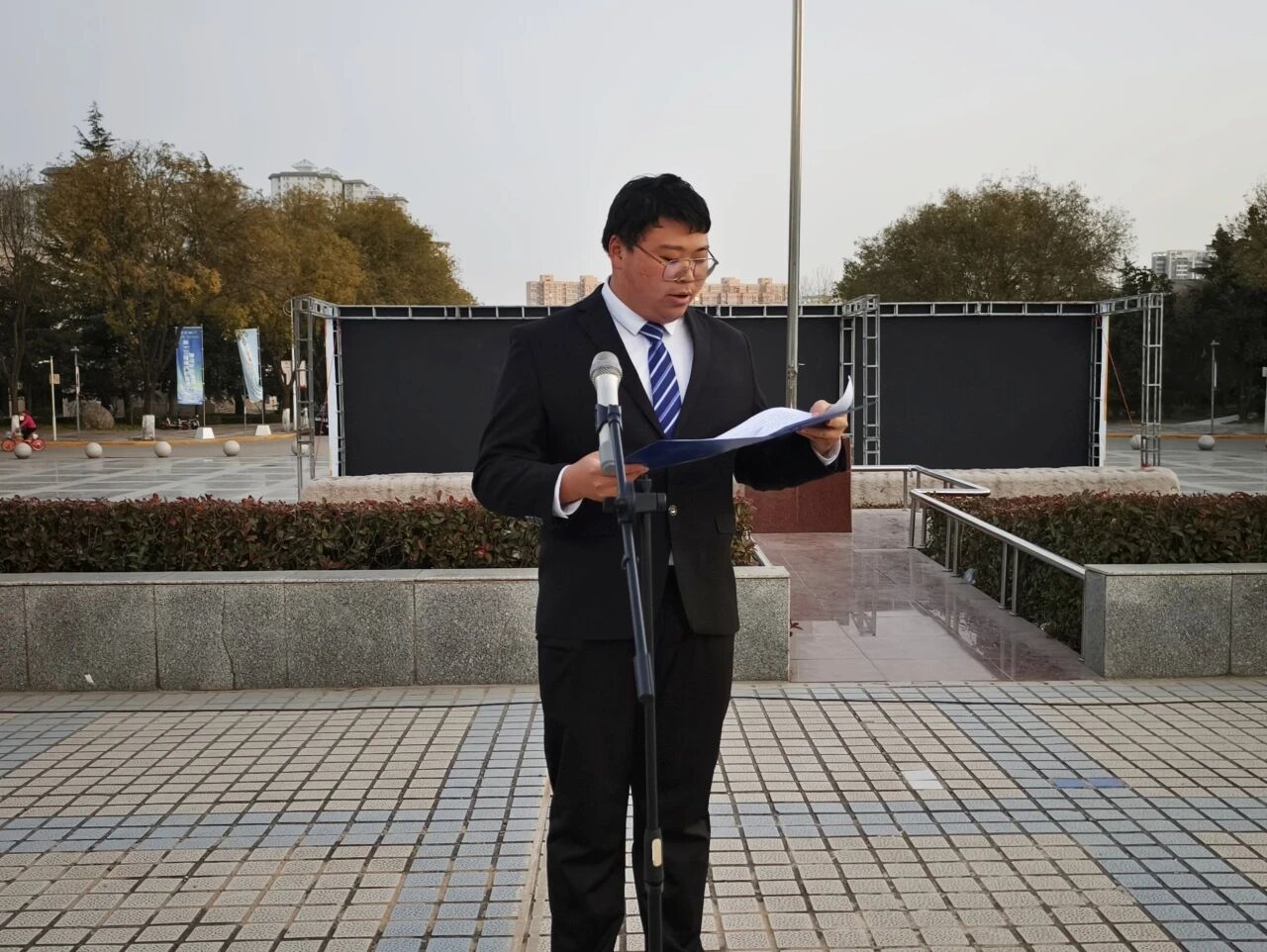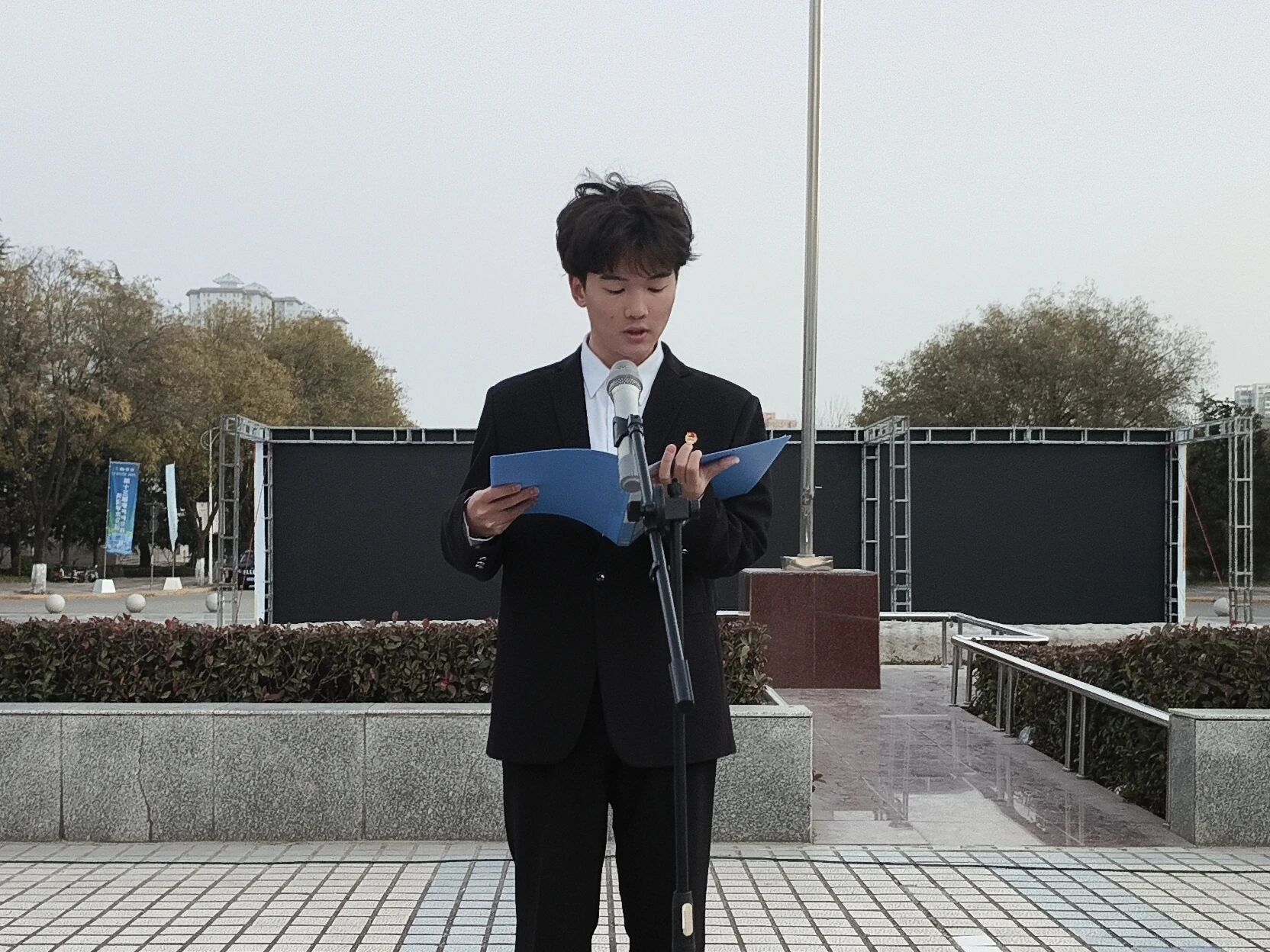 员工代表姚如畅以《弘扬宪法精神、青春与法同行》为主题进行国旗下演讲。他从宪法与公民日常生活的联系切入,阐述了宪法精神的内涵,呼吁同学们主动学习宪法、践行法治精神,让青春在法治轨道上扬帆远航。