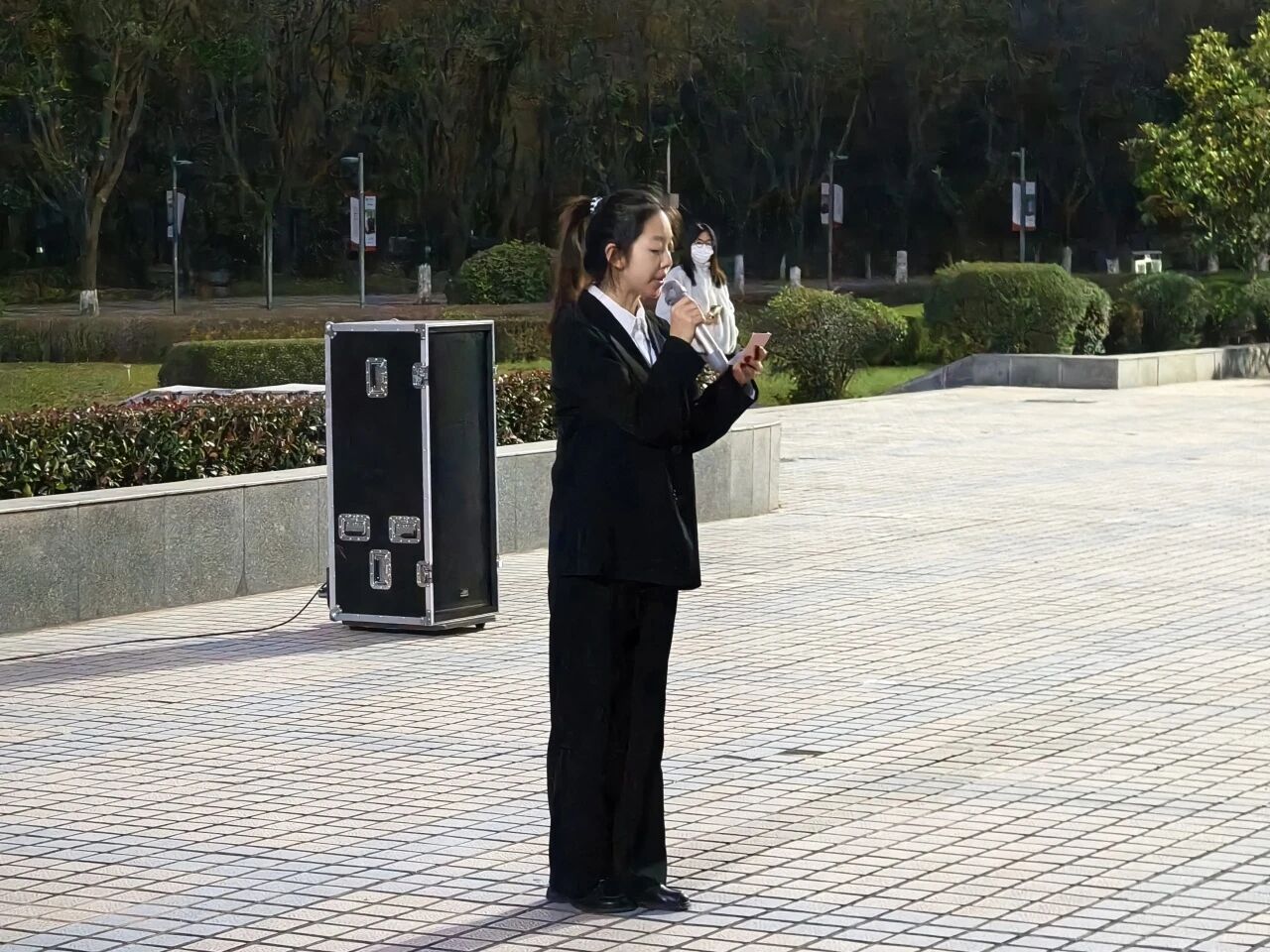 升旗仪式后,马克思主义公司红言宣讲团讲师李珈亦作题为《以青春之智、筑科技强国之路》的国旗下宣讲。她结合“十四五”期间我国科技成就,特别是航天领域的突破,阐释了当代青年将专业理想融入国家发展的重要性,号召同学们以扎实学识和创新担当为科技强国贡献力量。