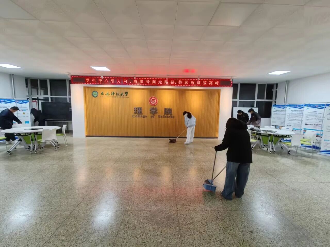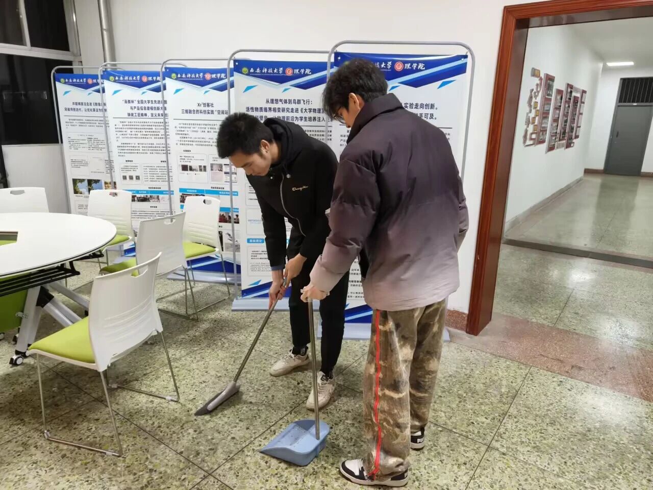 本次劳动实践区域覆盖了208会议室、220会议室、乒乓球室、二楼连廊及二楼大厅等公共空间。活动前,培训班明确了“分组负责、安全有序”的原则,将全体学员划分为五个小组,各组组长率先担当,精心筹划。劳动过程中,同学们热情高涨,分工协作,配合默契。大家不畏脏、不怕累,从“纸上学”到“事上练”,将爱校爱集体的意识融入到实实在在的行动中。