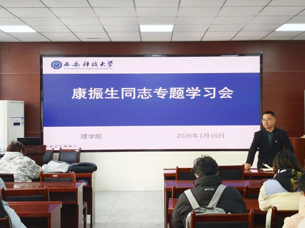 为更直观地感悟以康振生同志为代表的一代代建设者扎根西部的奋斗情怀,学习会现场组织观看了纪录片《大西北》。影片磅礴的历史画面与深情的叙事,生动展现了大西北的壮阔风貌与开发建设的艰辛历程,让同学们深刻体会到前辈们艰苦奋斗、开拓进取的精神力量。